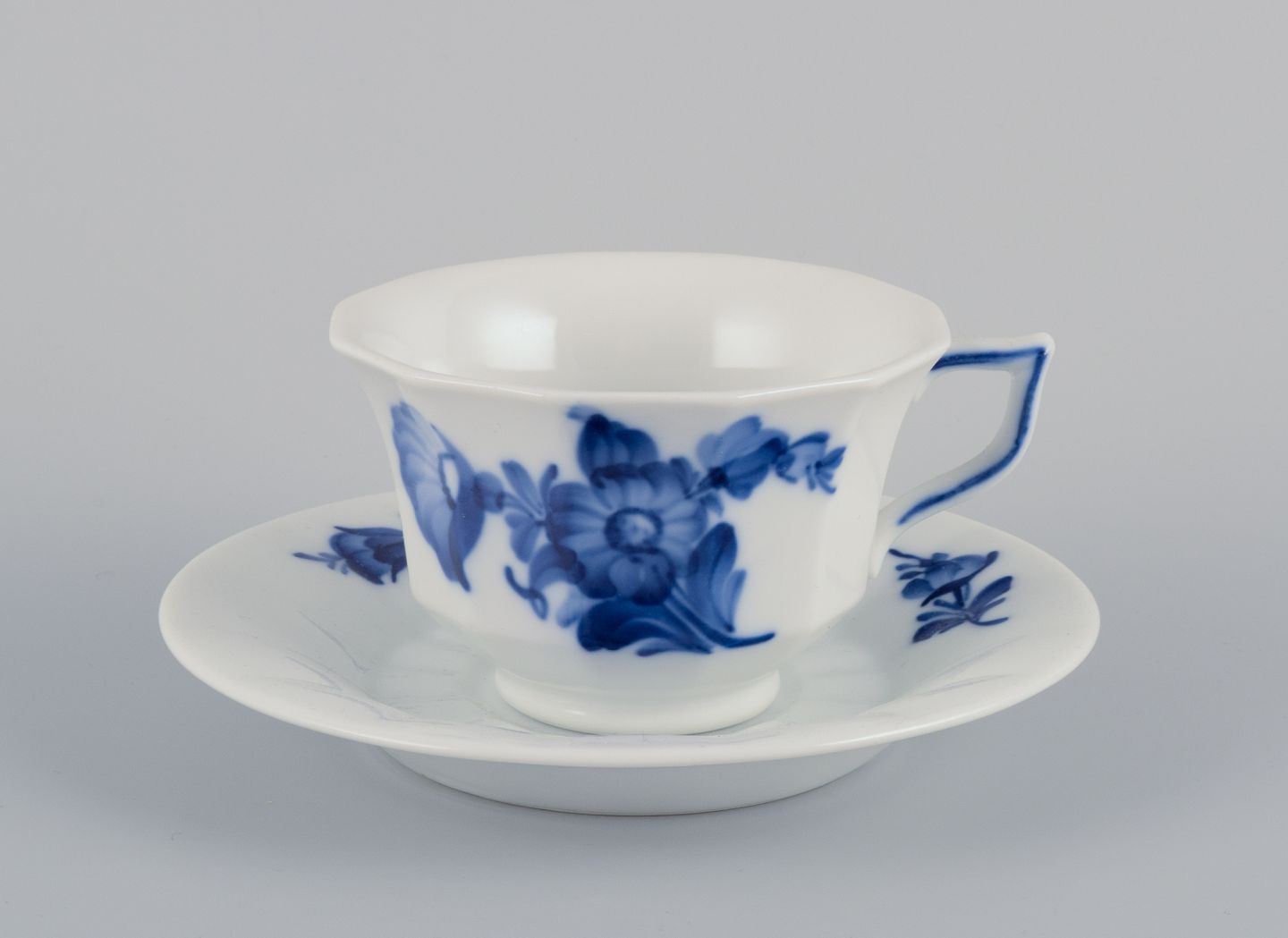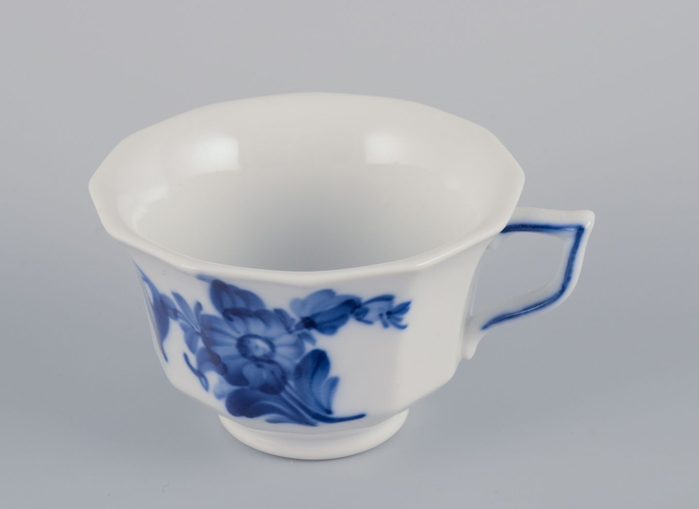 Royal Copenhagen Blå Blomst Kantet. Et sæt på otte kaffekopper med underkopper.