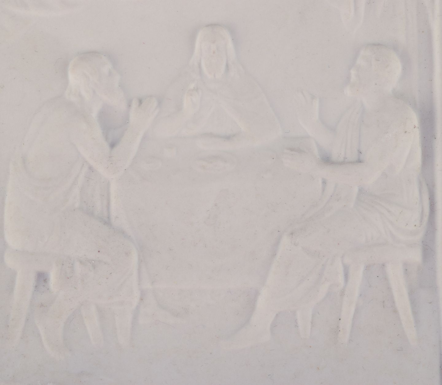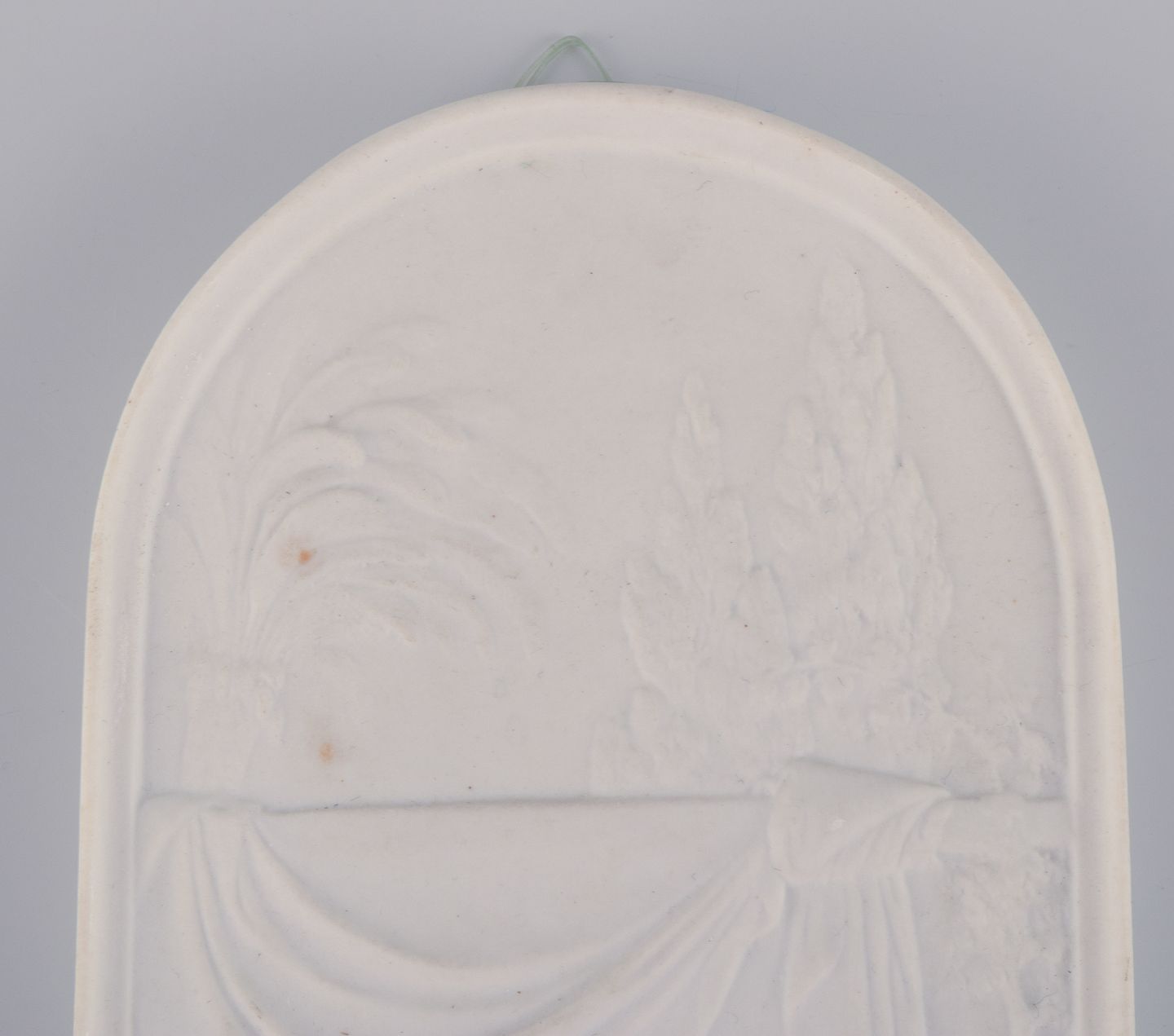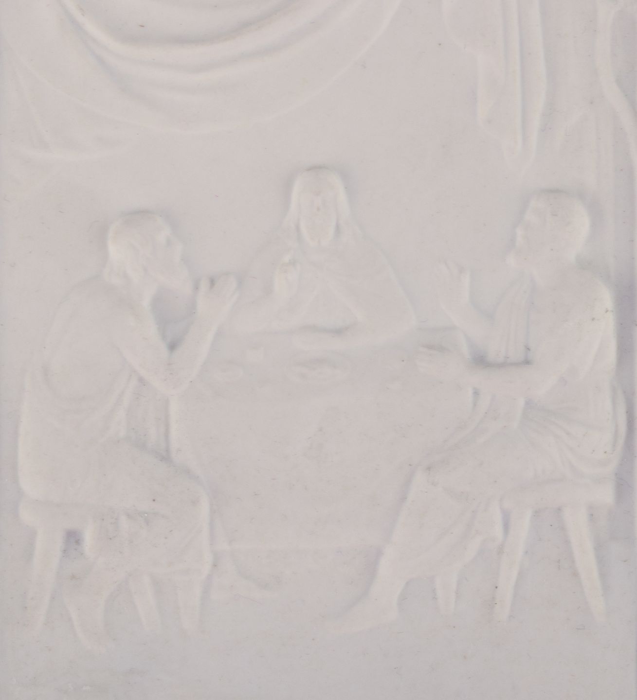 Bertel Thorvaldsen for Royal Copenhagen. Sjældent Relief i biscuit. Kristus i Emaus. Ca. 1880. Stemplet. Første sortering. I perfekt stand. Mål: B 9,0 cm. x H 18,0 cm.