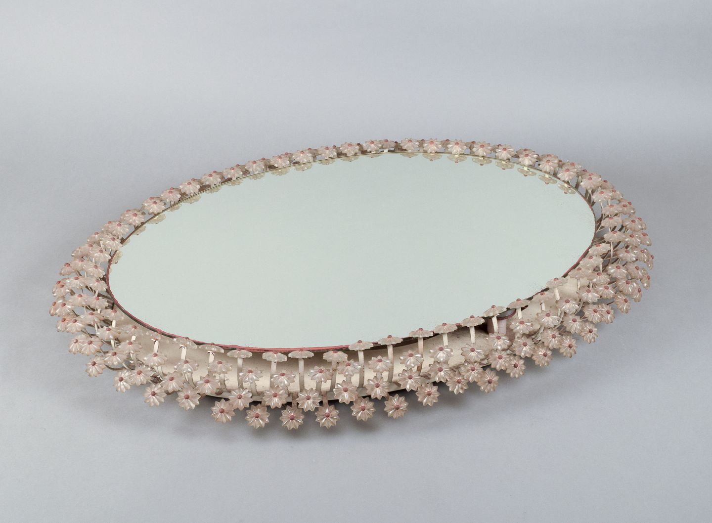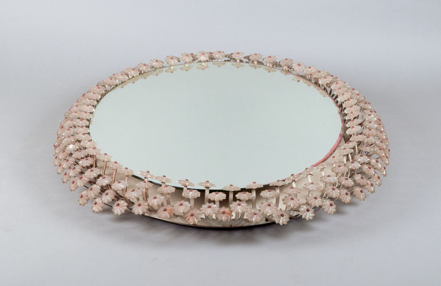 Emil Stejnar for Rupert Nikoll. Oplyst spejl omkranset af blomster i akrylplast med stilke i stål.