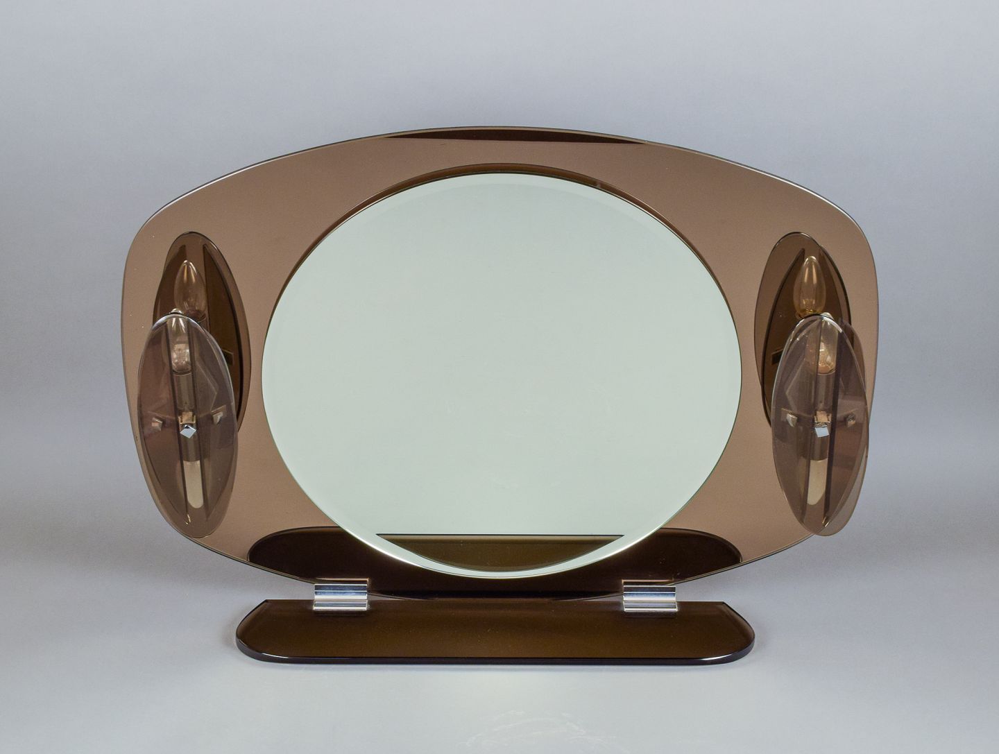 Fontana Arte, Italien. Stort vægspejl i røgfarvet glas. 1980´erne. I perfekt stand. Mål: B 81,0 cm. x H 61,0 cm. x D 10,5 cm.