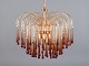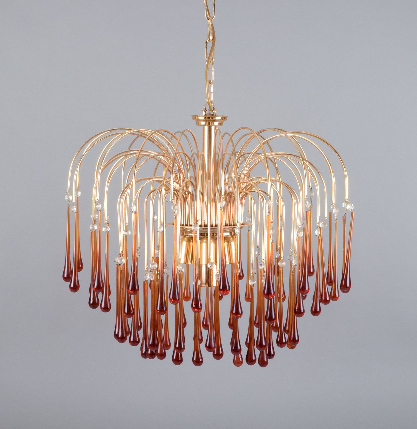 Murano, Italien. Stor loftslampe i ravfarvet mundblæst kunstglas, stel i messing. Italiensk design. Til 7 pærer. 1960'erne. I perfekt stand. Mål: H 50,0 cm. uden ophæng x D 60,0 cm