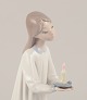Lladro, Spanien. To Porcelænsfigurer. Pige med natkammerstage samt figur af engel med sovende barn.