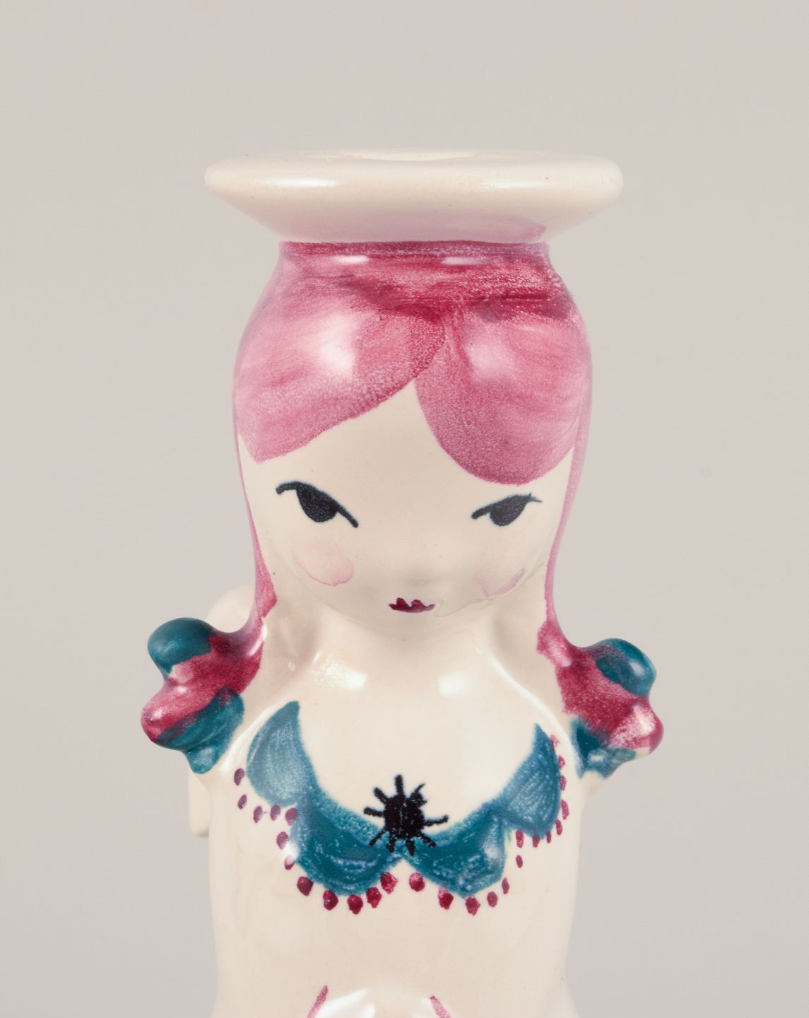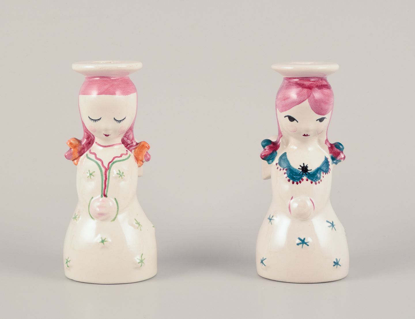 Nymølle, Danmark. Et par lysestager af engle i fajance. Hånddekoreret. Ca. 1960. Stemplet. Perfekt stand. Mål: D 5,0 cm. x H 12,0 cm.