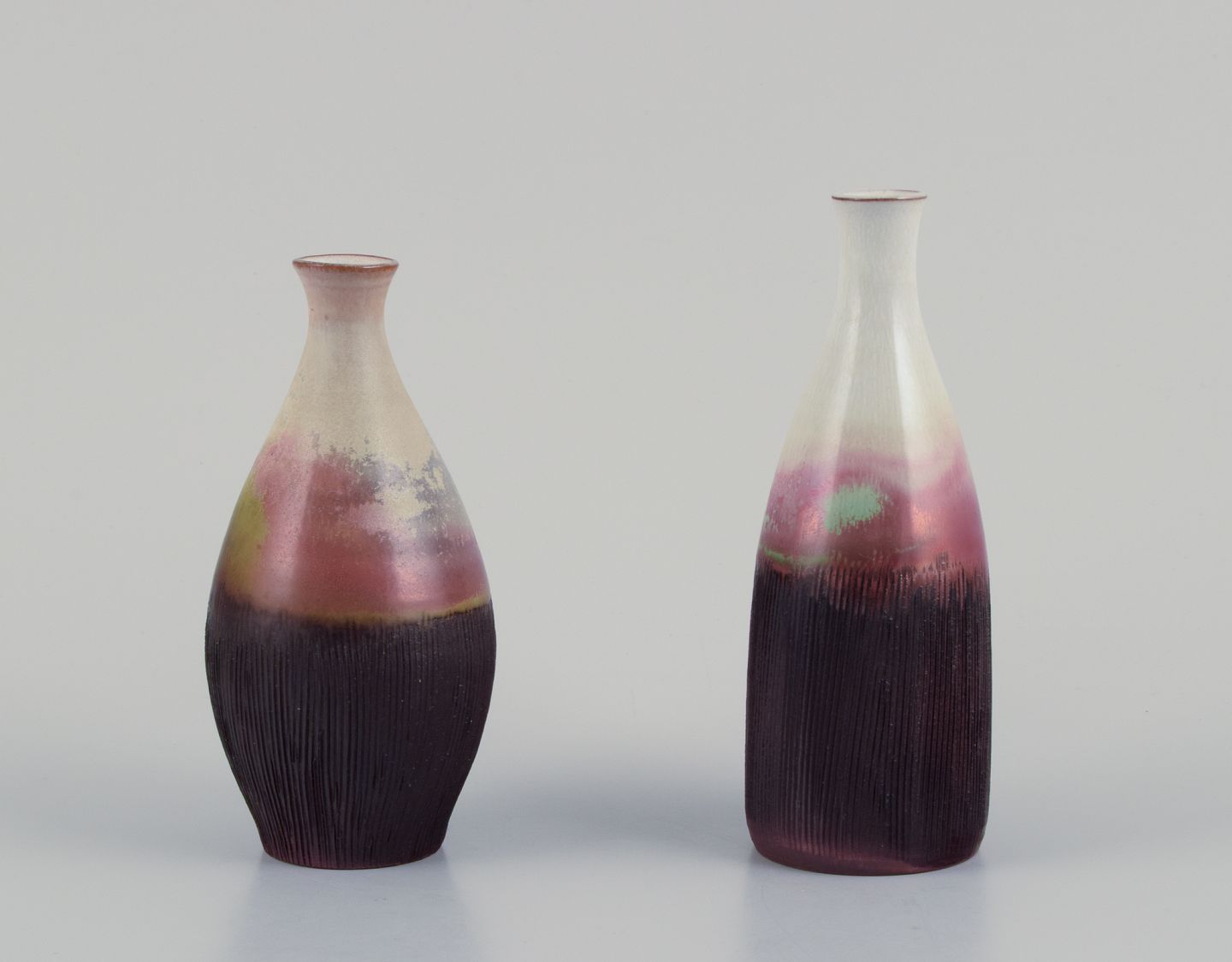 Sven Hofverberg, svensk keramiker. To unika keramikvaser. Mangefarvet glasur.