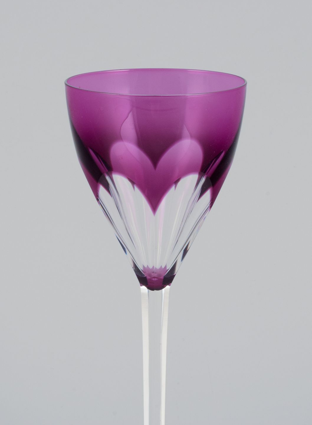 Val St. Lambert, Belgien. Tre rødvinsglas i facetslebet krystal.