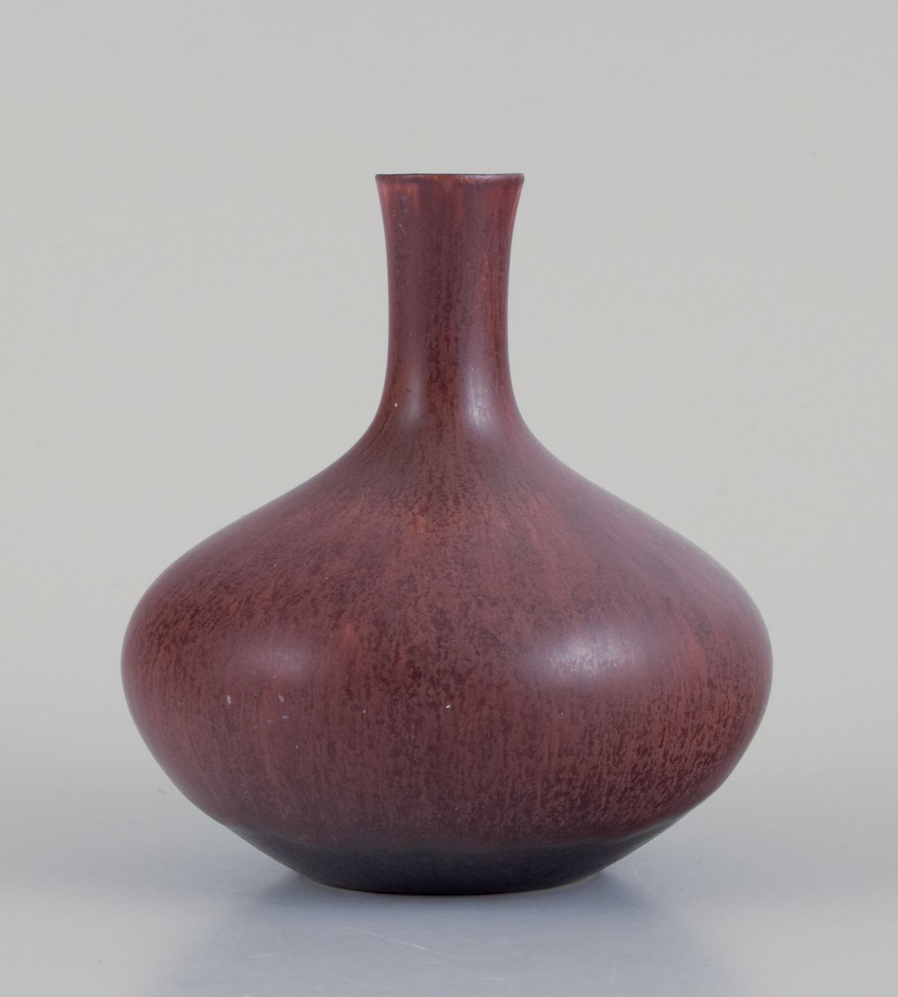 Carl Harry Stålhane (1920-1990) for Rörstrand, Sverige. Keramikvase med rundt korpus og slank hals. Glasur i brune toner.