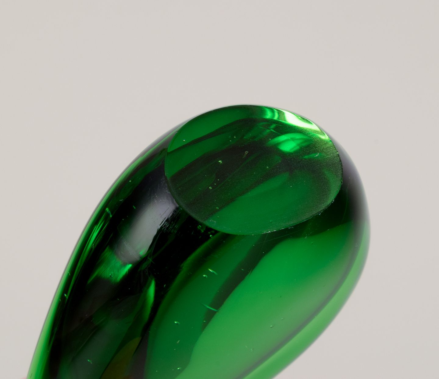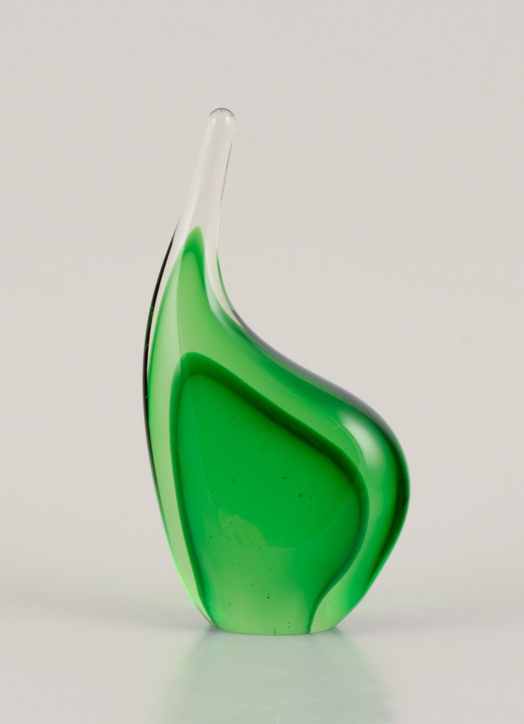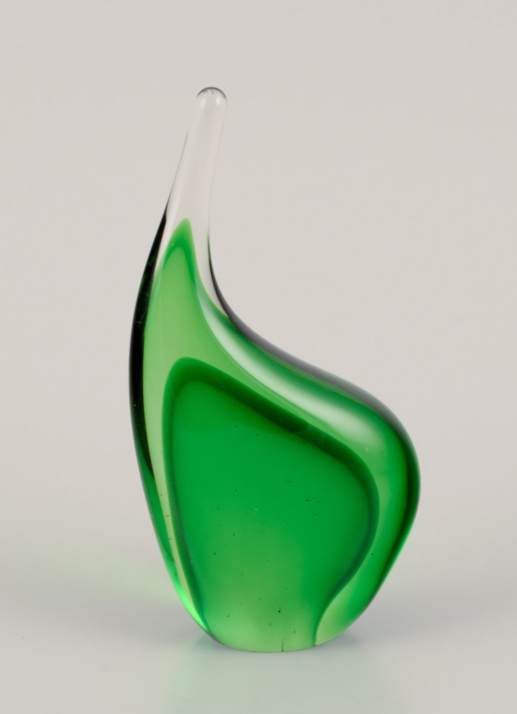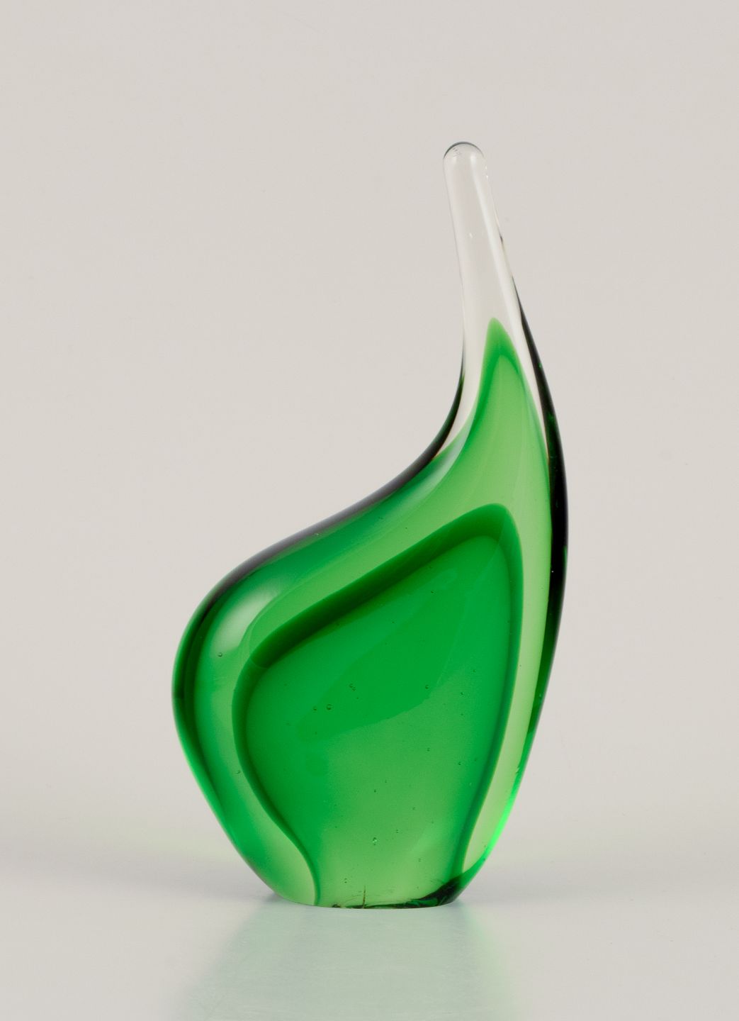 Per Lütken for Holmegaard. Skulptur i grønt kunstglas. Organisk form. 1960’erne. Perfekt stand. Mål: B 7,5 cm. x D 3,5 cm. x H 14,5 cm.