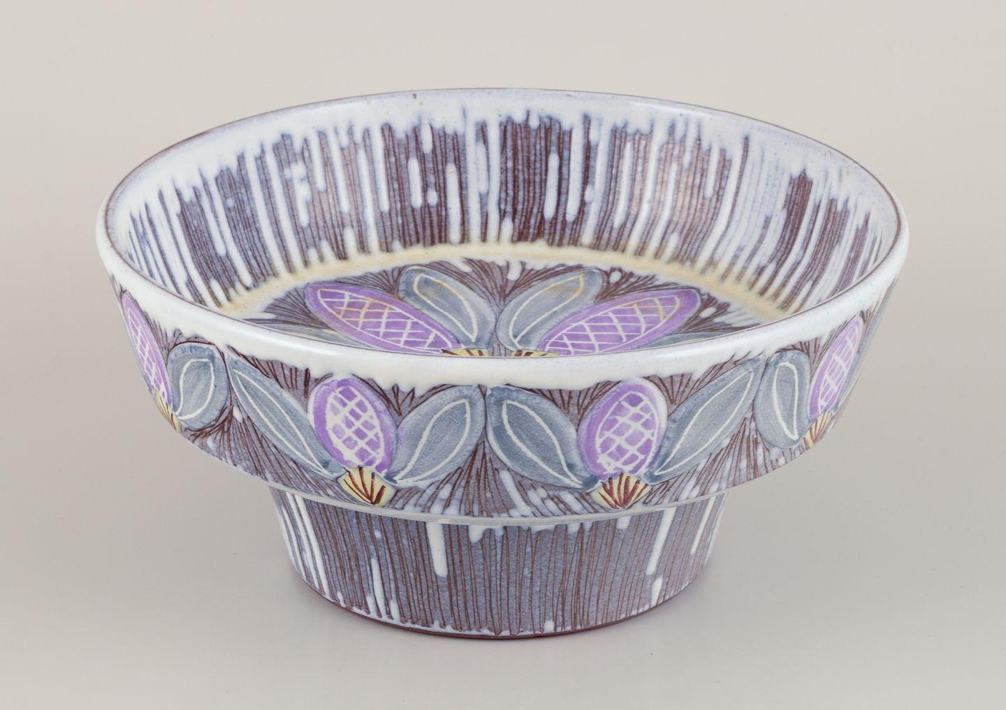 Olof Larsson for Laholm, Sverige. Skål i keramik. Polykrom glasur med blomstermotiver. Model 783 Ca. 1960. Stemplet. I perfekt stand. Mål: D 20,5 x H 9,5 cm.