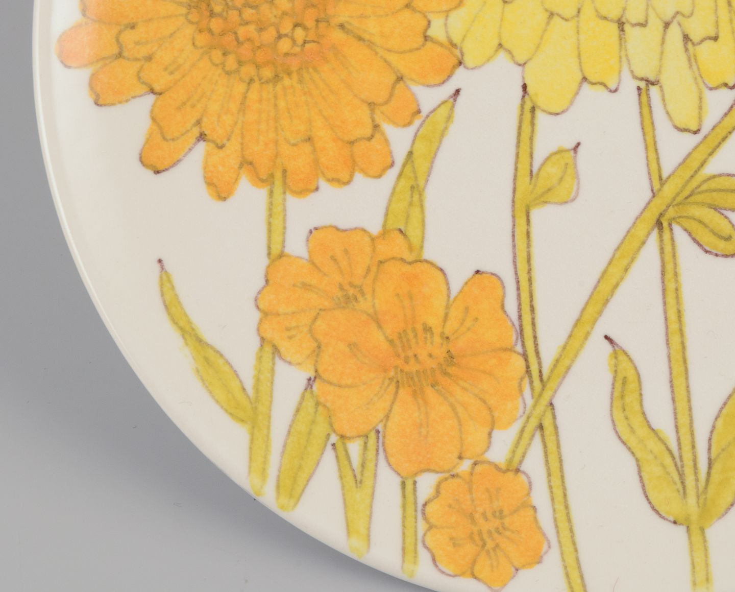 Ernestine Salerno, Italy. A set of five ceramic plates. Hand-painted with sunflowers.