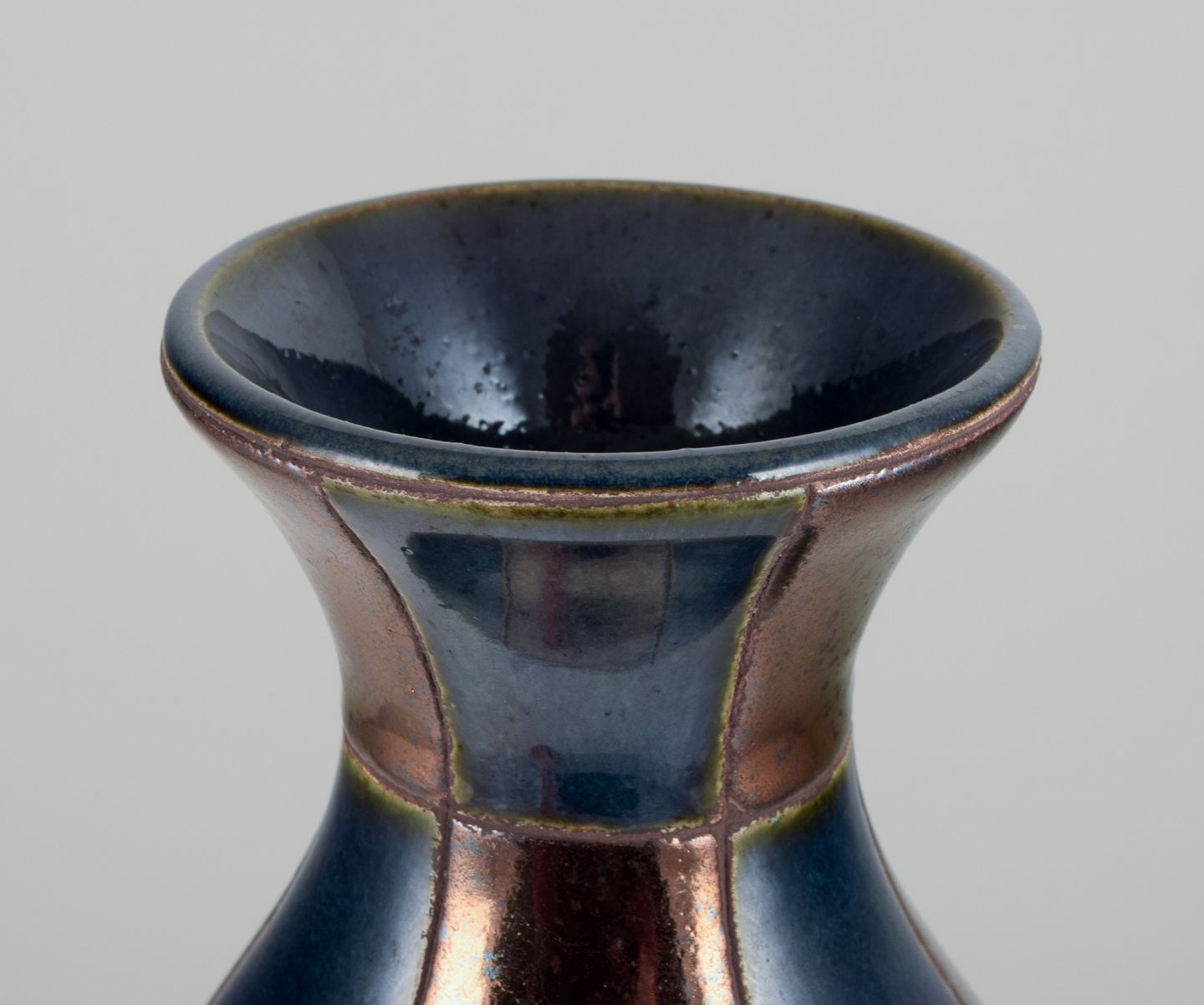 Firkantede felter i blå og guldtonet blank glasur.