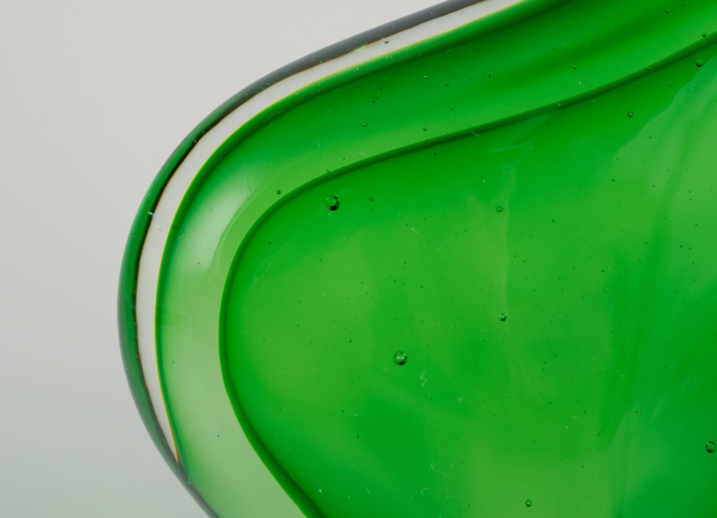 Per Lütken for Holmegaard. Skulptur i grønt kunstglas. Organisk form. 1960’erne. Perfekt stand. Mål: H 20,0 cm. x B 11,0 cm. x D 5,0 cm.