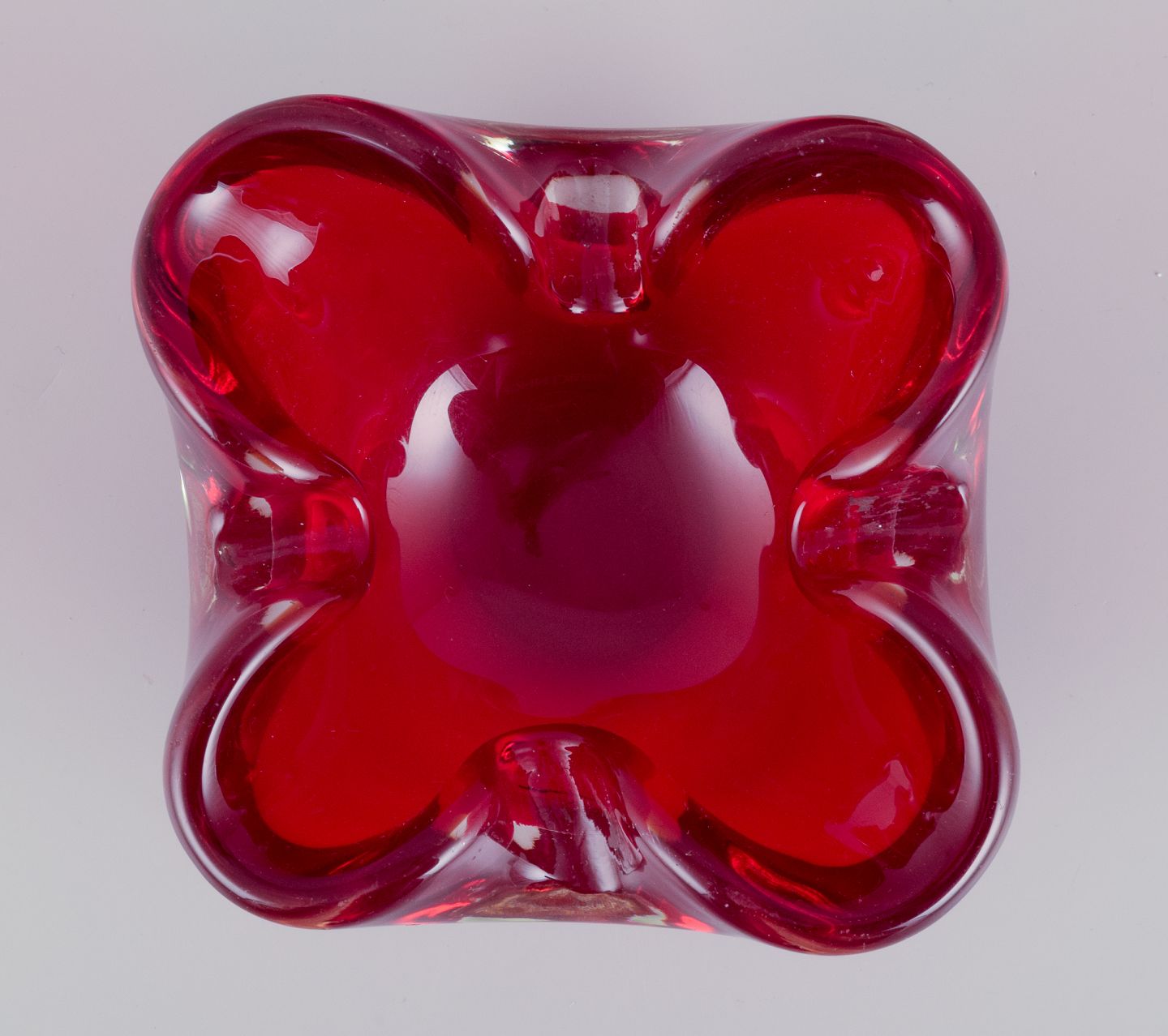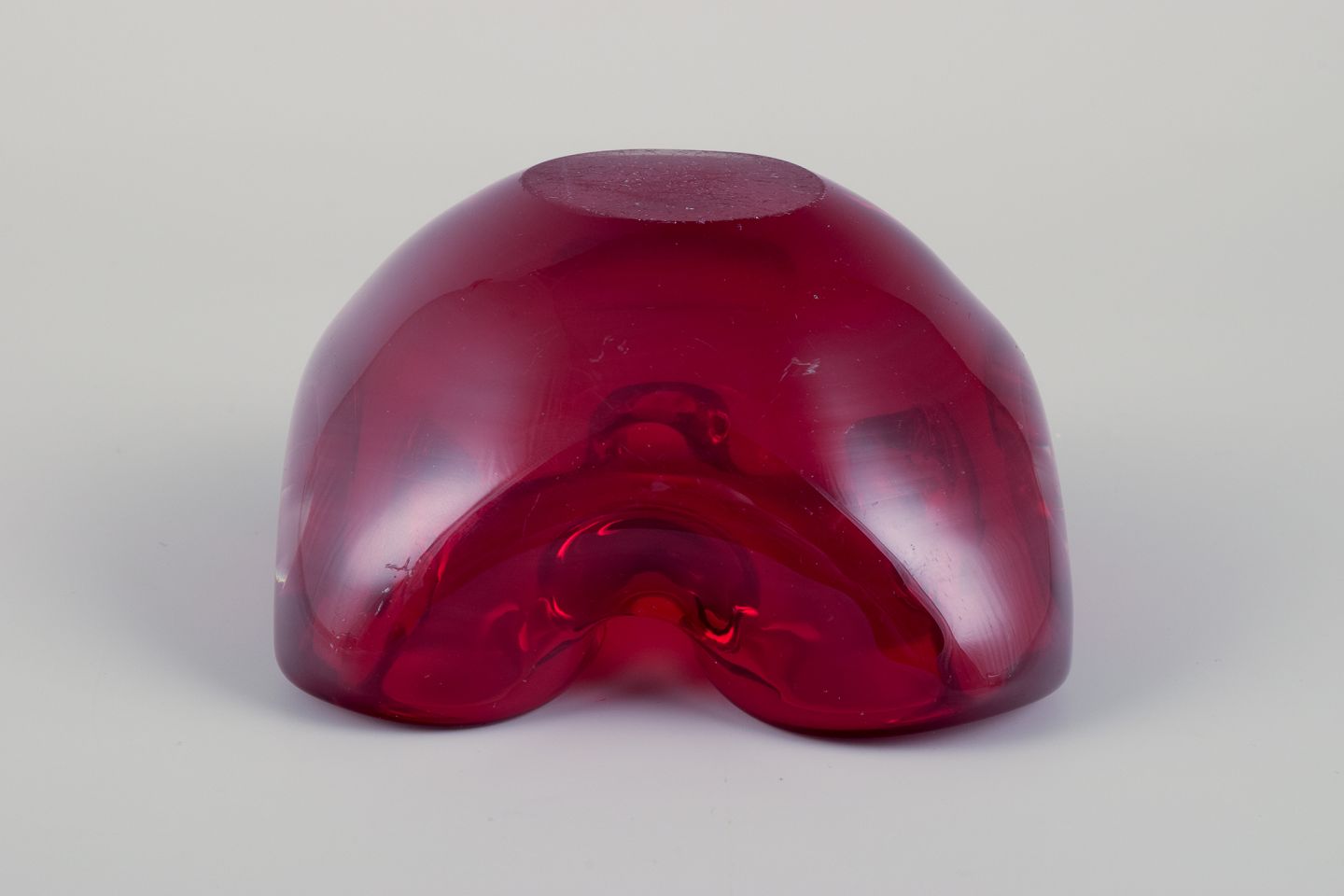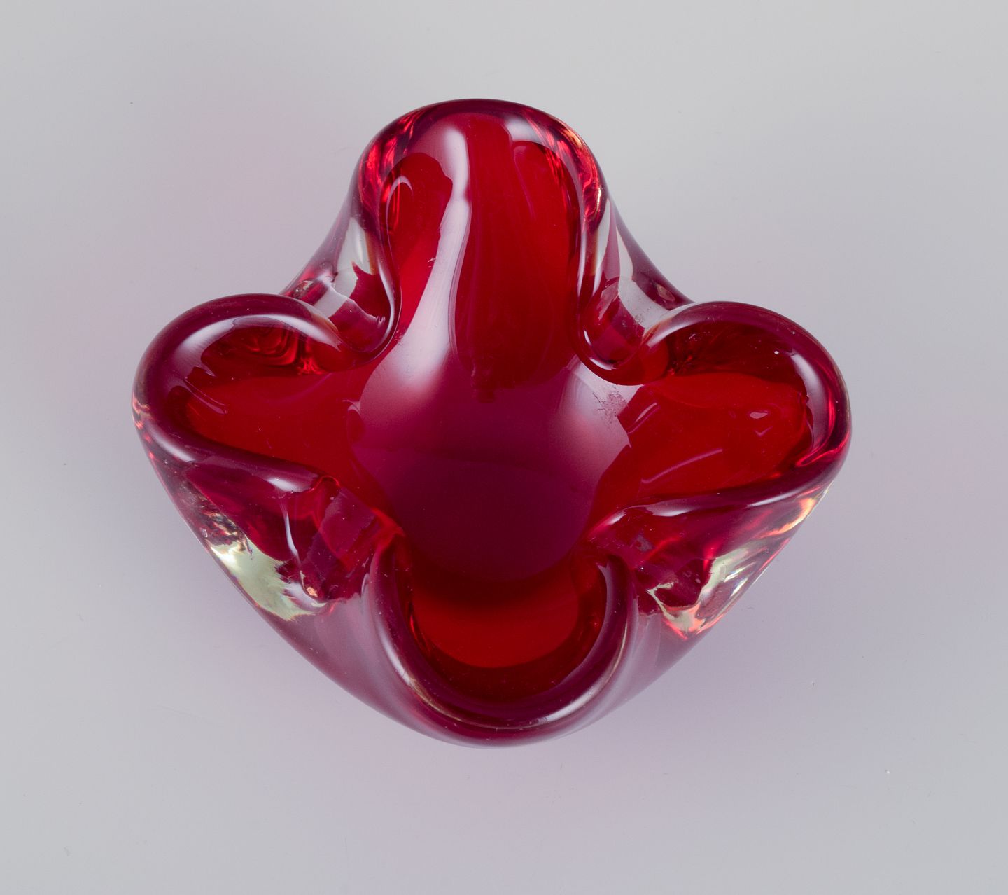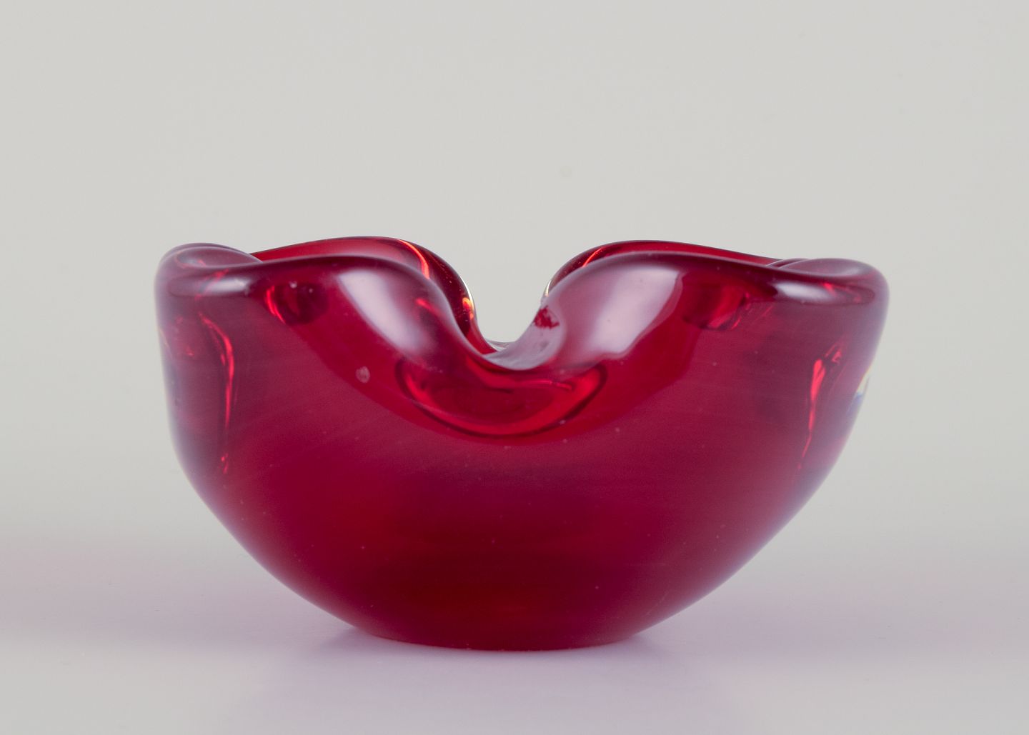 Murano, Italien. Kunstglas skål i dybrødt glas. Luftbobler indvendigt. Mundblæst.