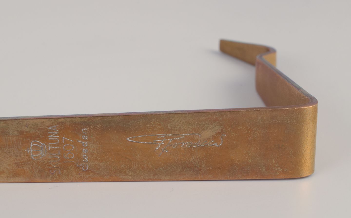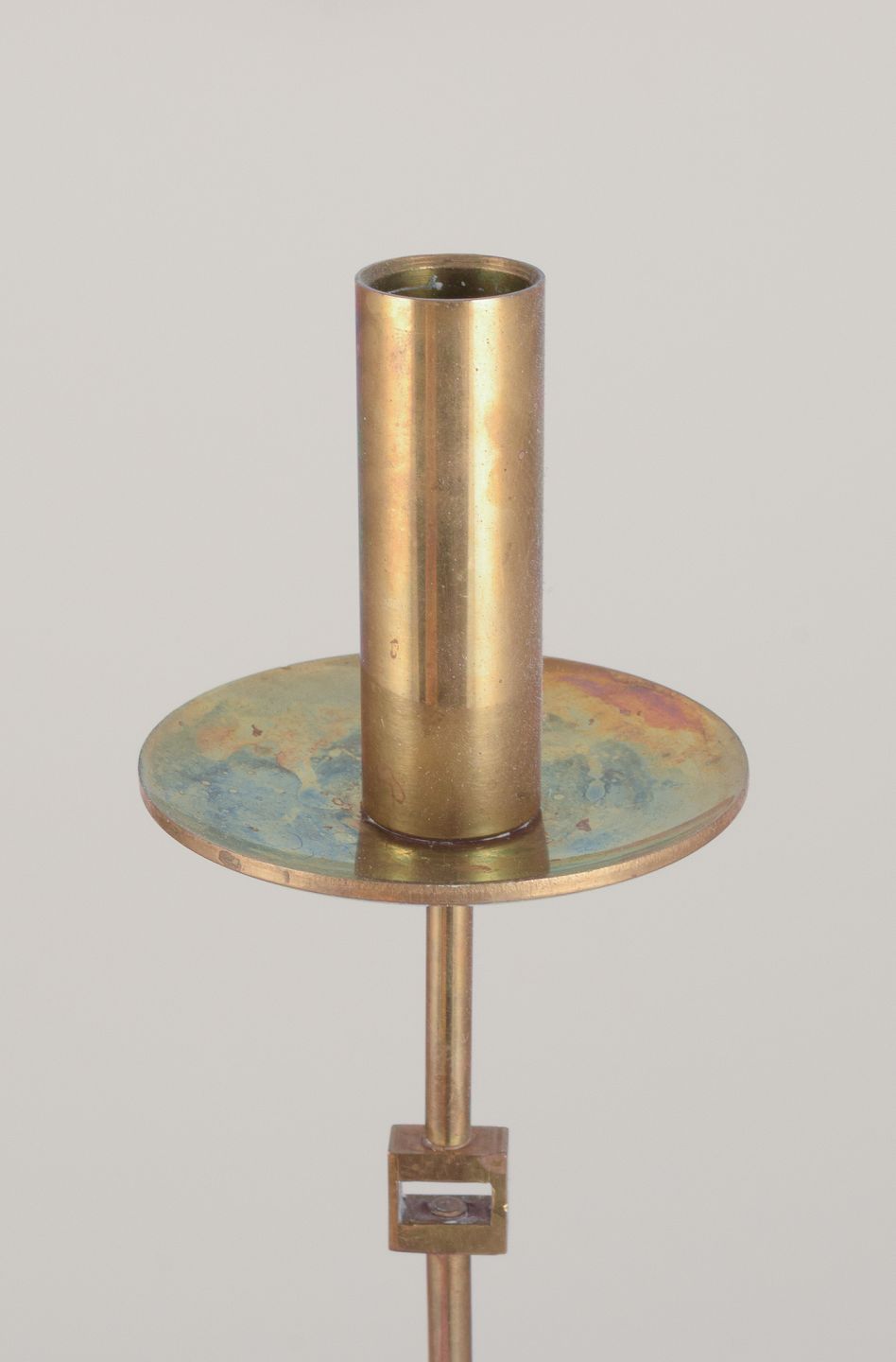 Skultuna, Sweden. A pair of wall-mounted candle sconces in brass. Designed by Pierre Forsell in the 1970s. 1970s/80s. Marked. In excellent condition with patina. Height: 47.5 cm.