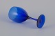 Et sæt på seks rødvinsglas i blåt kunstglas. Håndlavet.