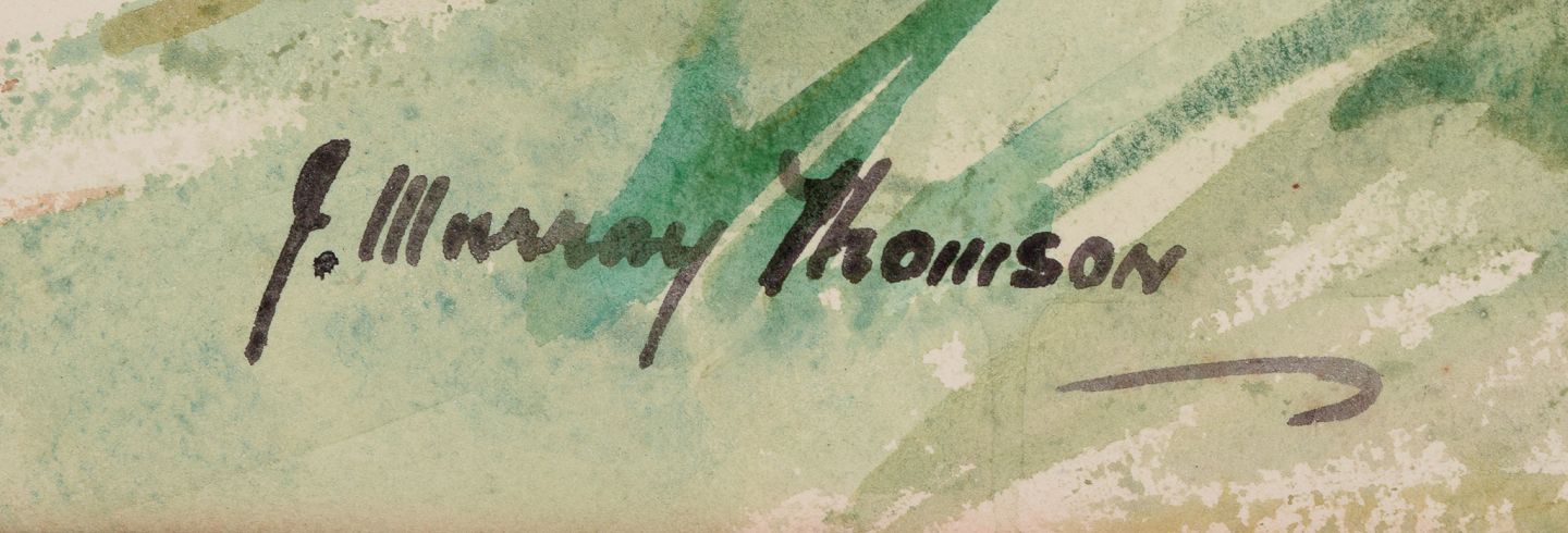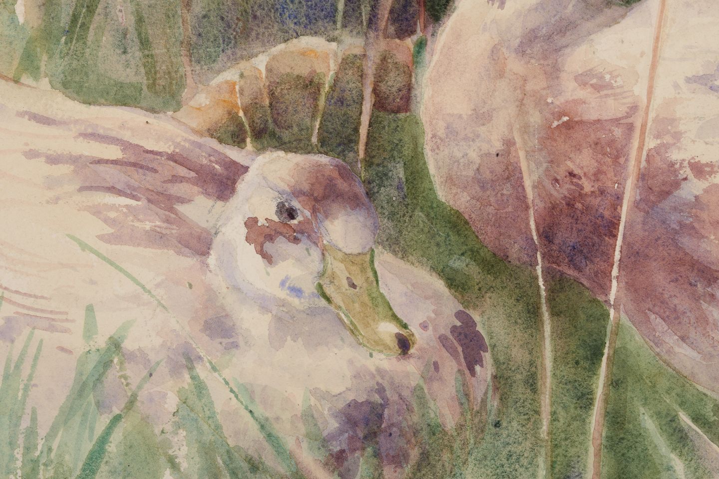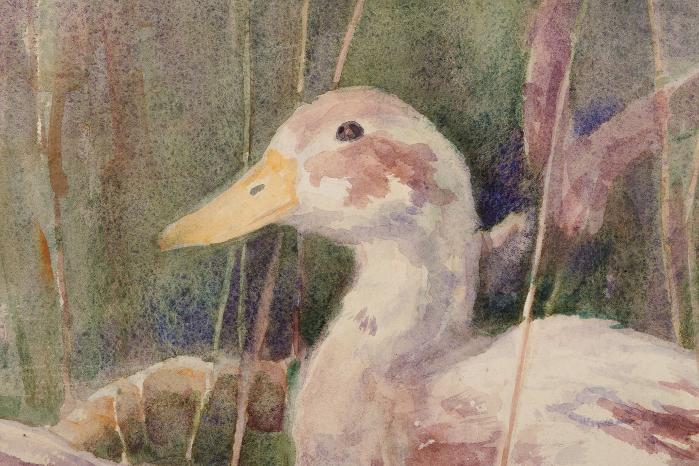 John Murray Thompson (1885-1974), akvarel på papir. Ænder i landskab. Midt 1900-tallet. I perfekt stand. Signeret. Mål: 53,0 cm. x 37,5 cm. Totalmål: 72,5 cm. x 57,0 cm.