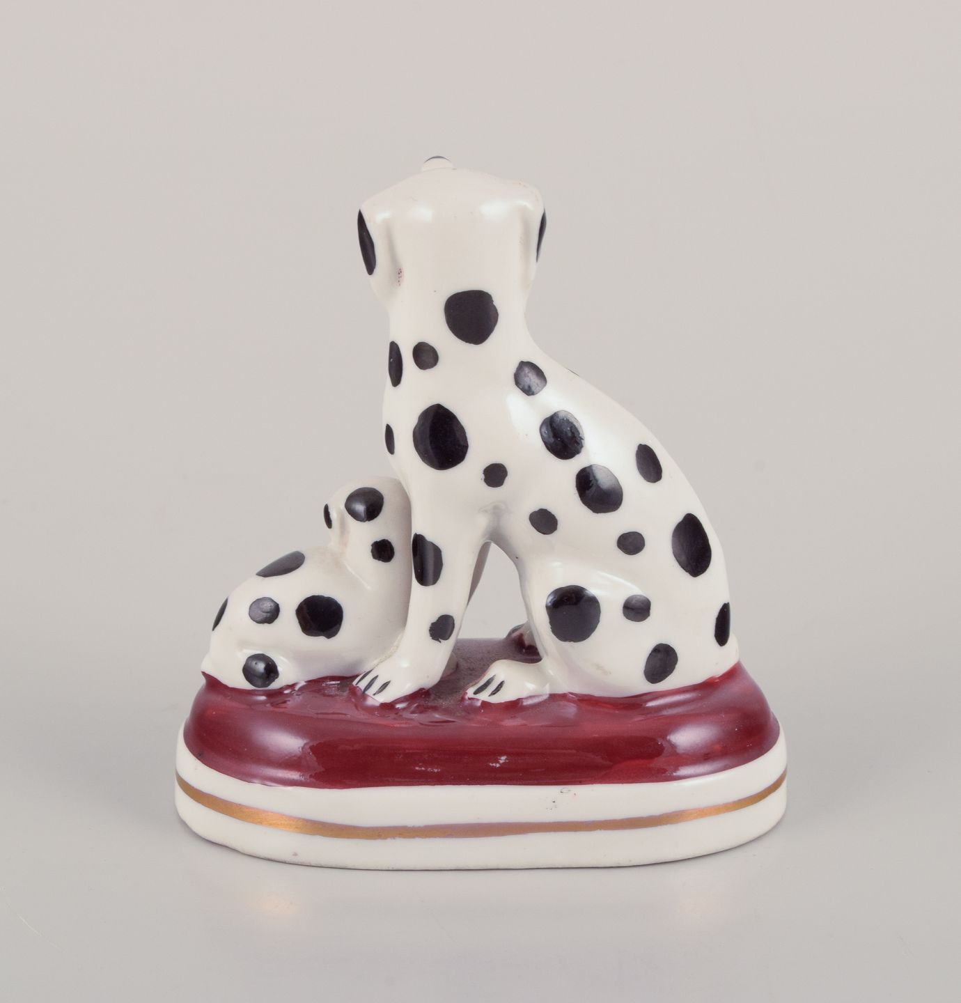 Tre dele fransk og engelsk porcelæn bestående af Royal Crown Derby miniaturekrus, miniature porcelænsfigur af to dalmatinere samt en hjerteformet JACQUES FEBVRIER Manufactory lågæske i fajance signeret, Lille 1763.
