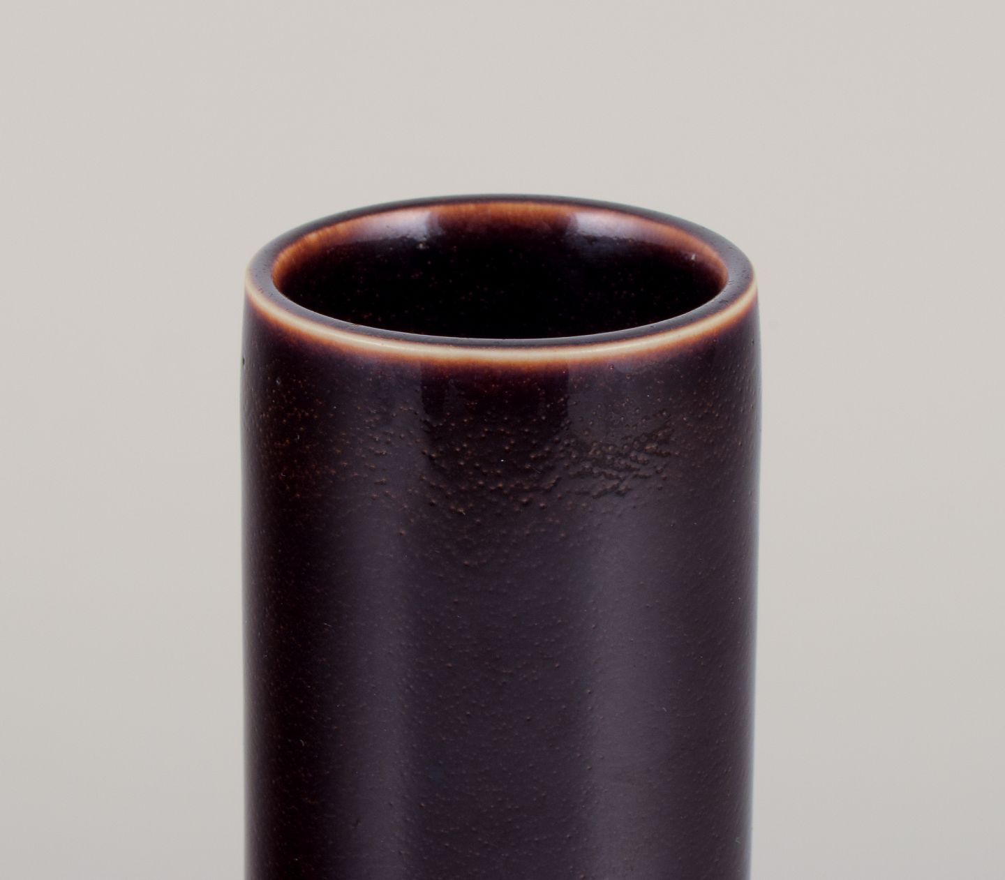 Unika keramikvase. Cylinderformet. Glasur i brune nuancer.