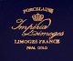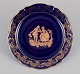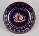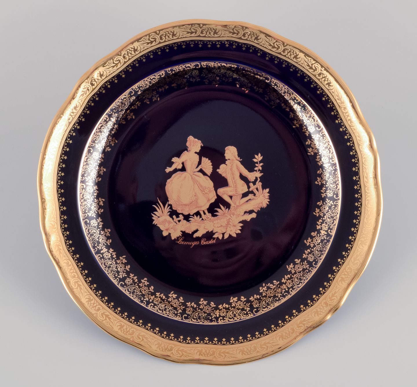 Limoges, France. Four plates in porcelain decorated with 22-karat gold leaf. Beautiful royal blue glaze. Scène galante.