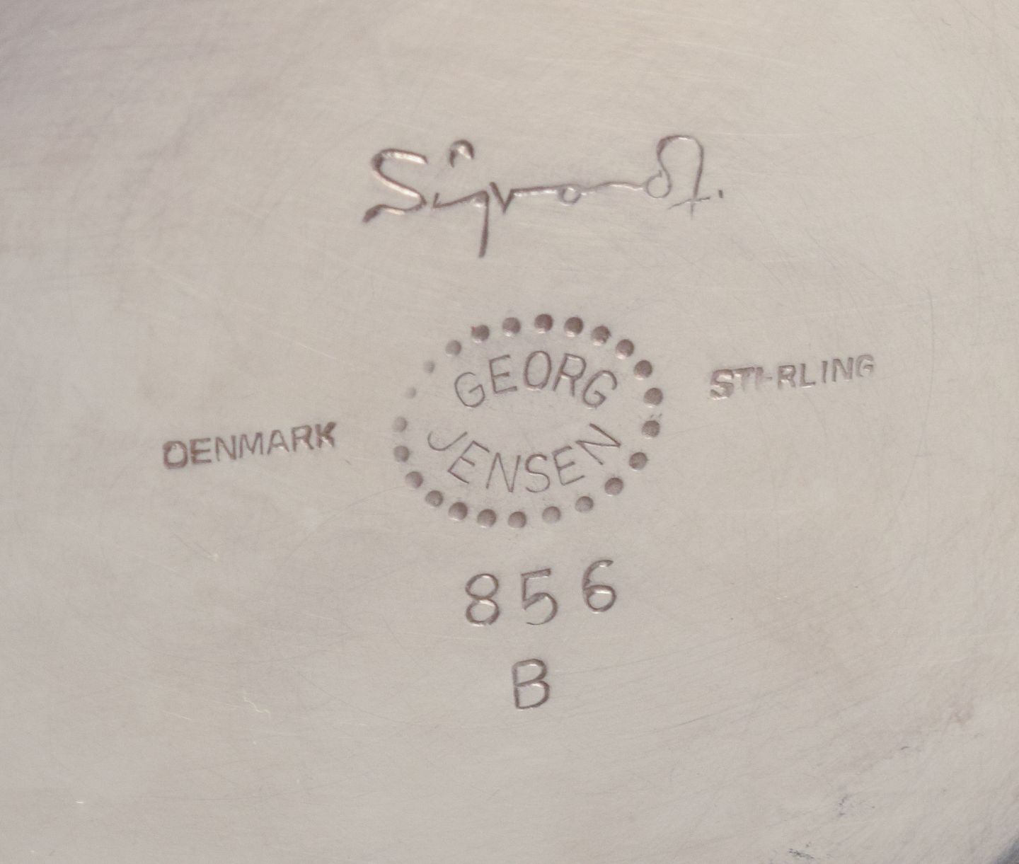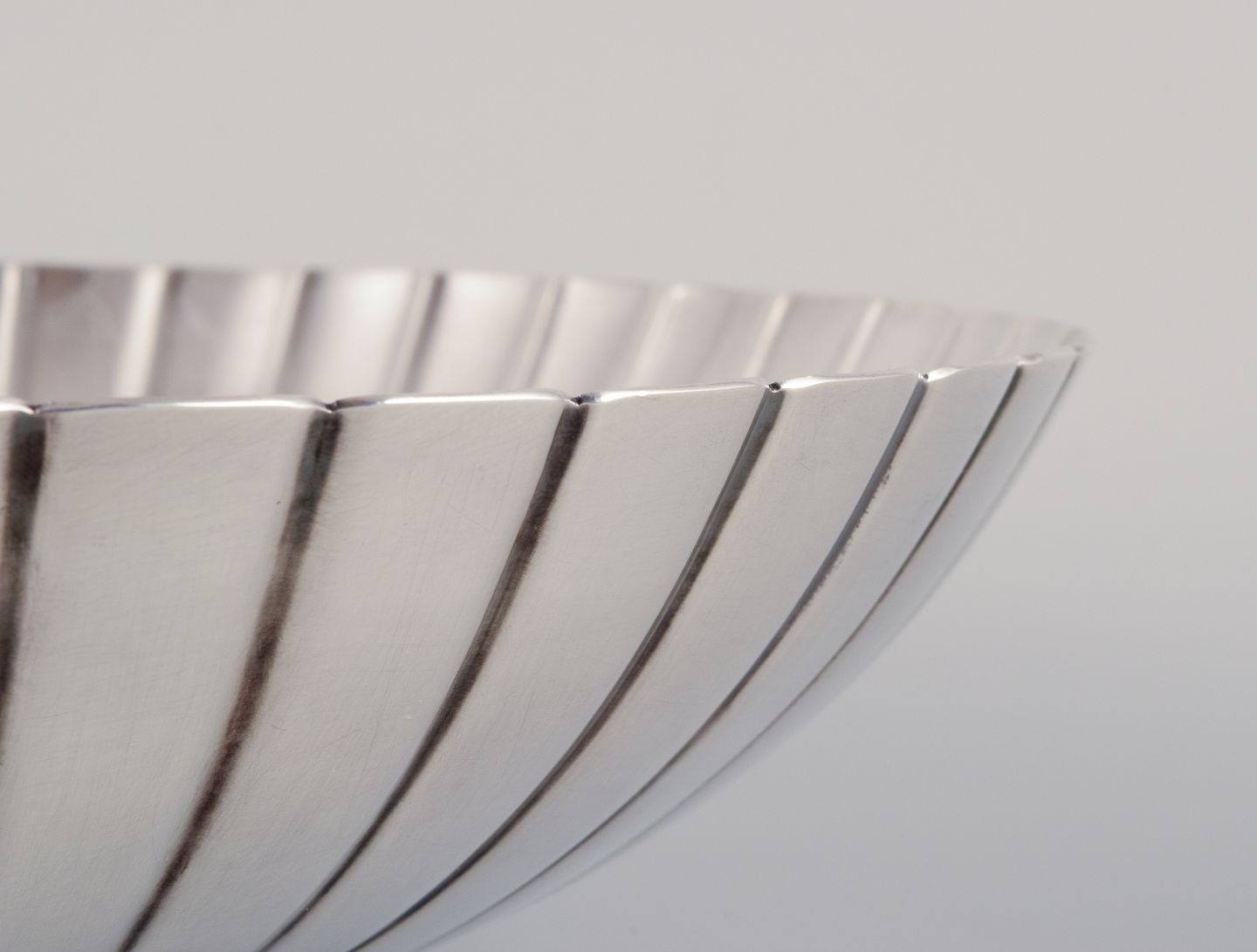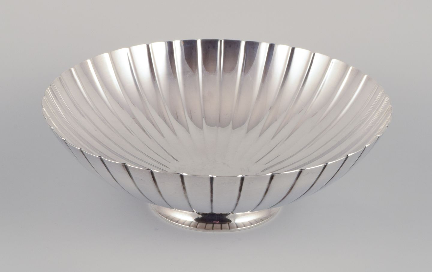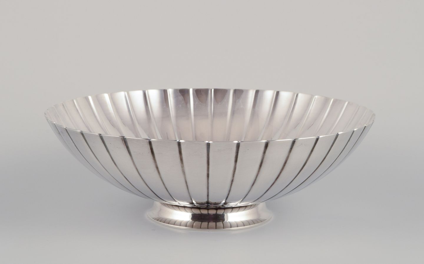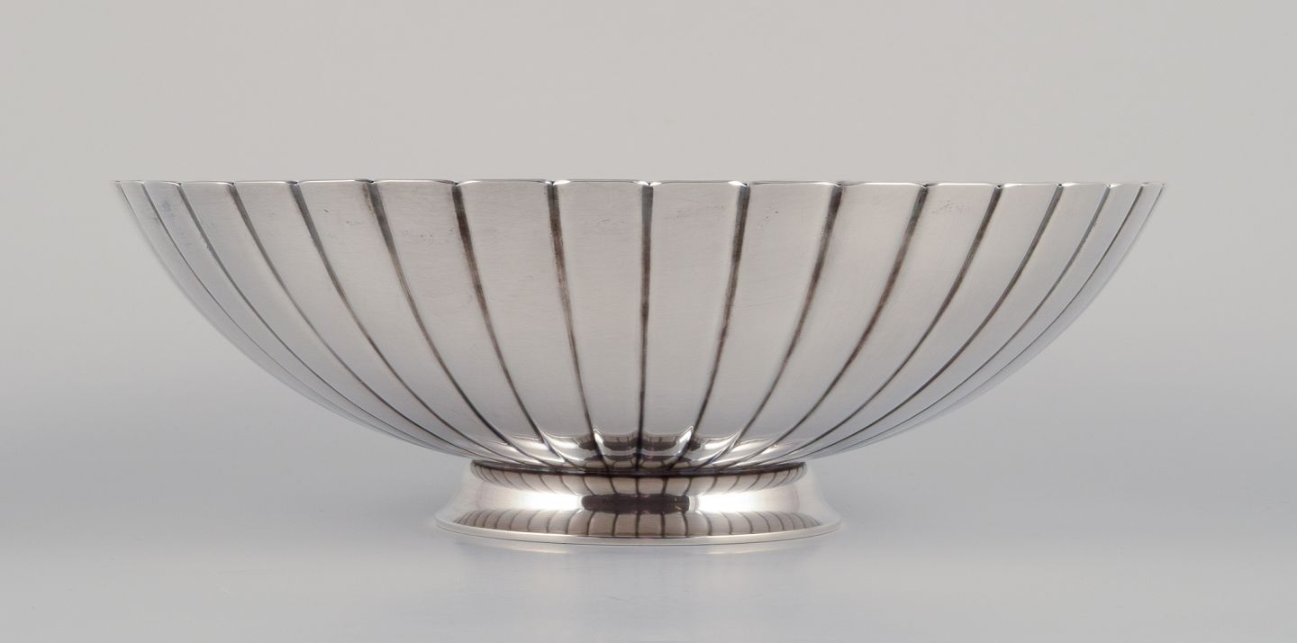 Sigvard Bernadotte for Georg Jensen. Stor skål i sterlingsølv med rillet design. Model: 856B Efter 1944 stempel. Designår 1943. Perfekt stand. Mål: D 25,5 cm. x H 8,2 cm.