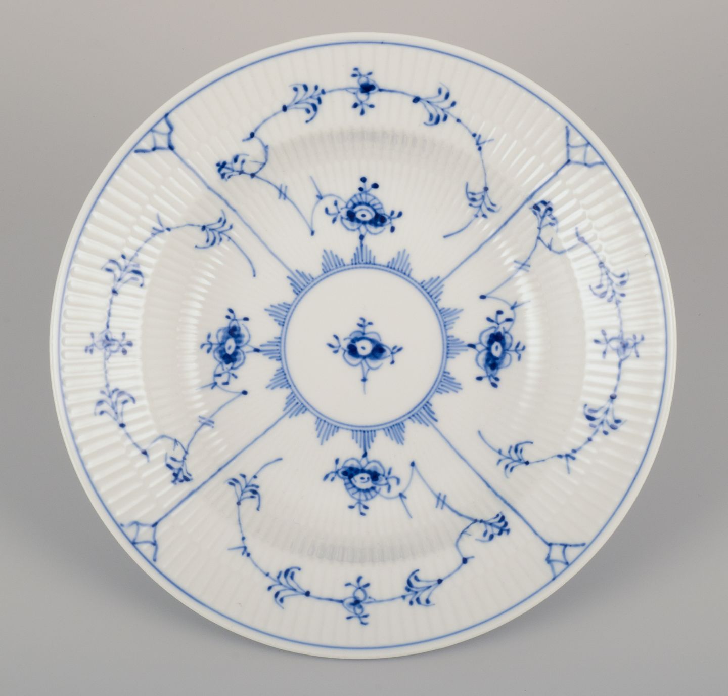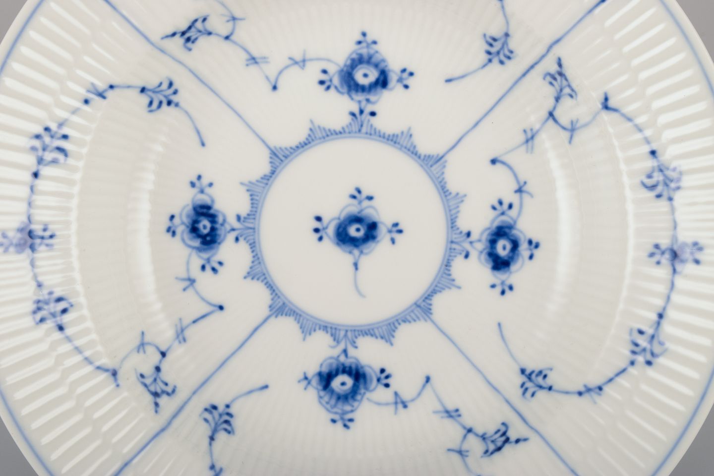 Royal Copenhagen Musselmalet Riflet. Et sæt på fire dybe tallerkner i porcelæn.