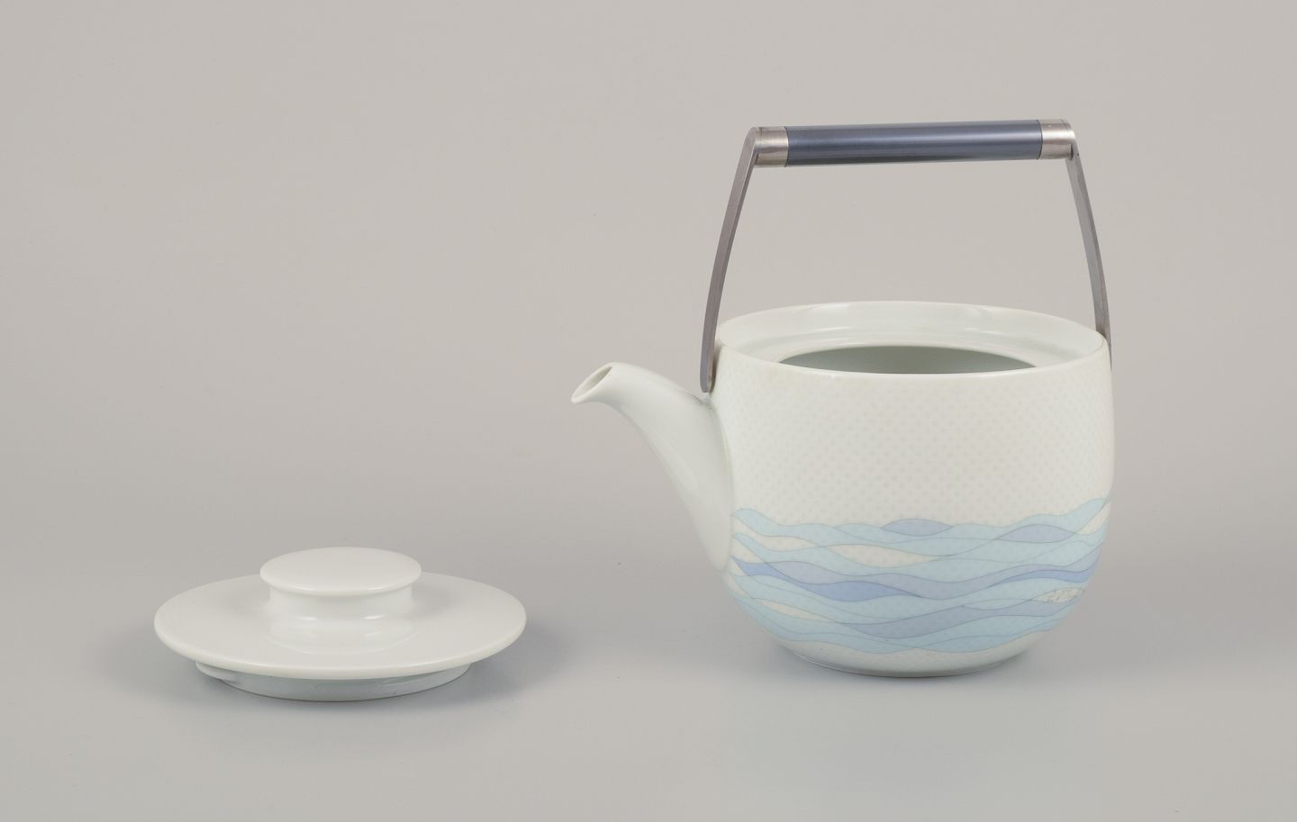 ”Aquarius” tekande i porcelæn designet af Rut Bryk. Hank i rustfrit stål.