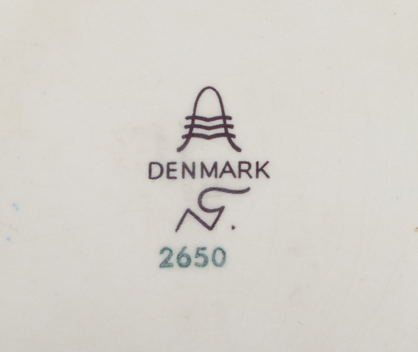 Nils Thorsson for Aluminia. Skål i fajance med blåmalet glasur. Motiv af fisk. Midt 1900-tallet. Modelnummer 2650. Stemplet Perfekt stand. Første sortering. Mål: D 19,0 cm. x H 4,5 cm.