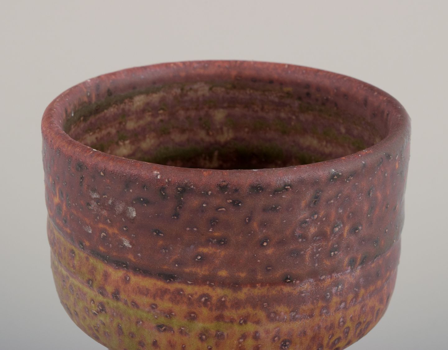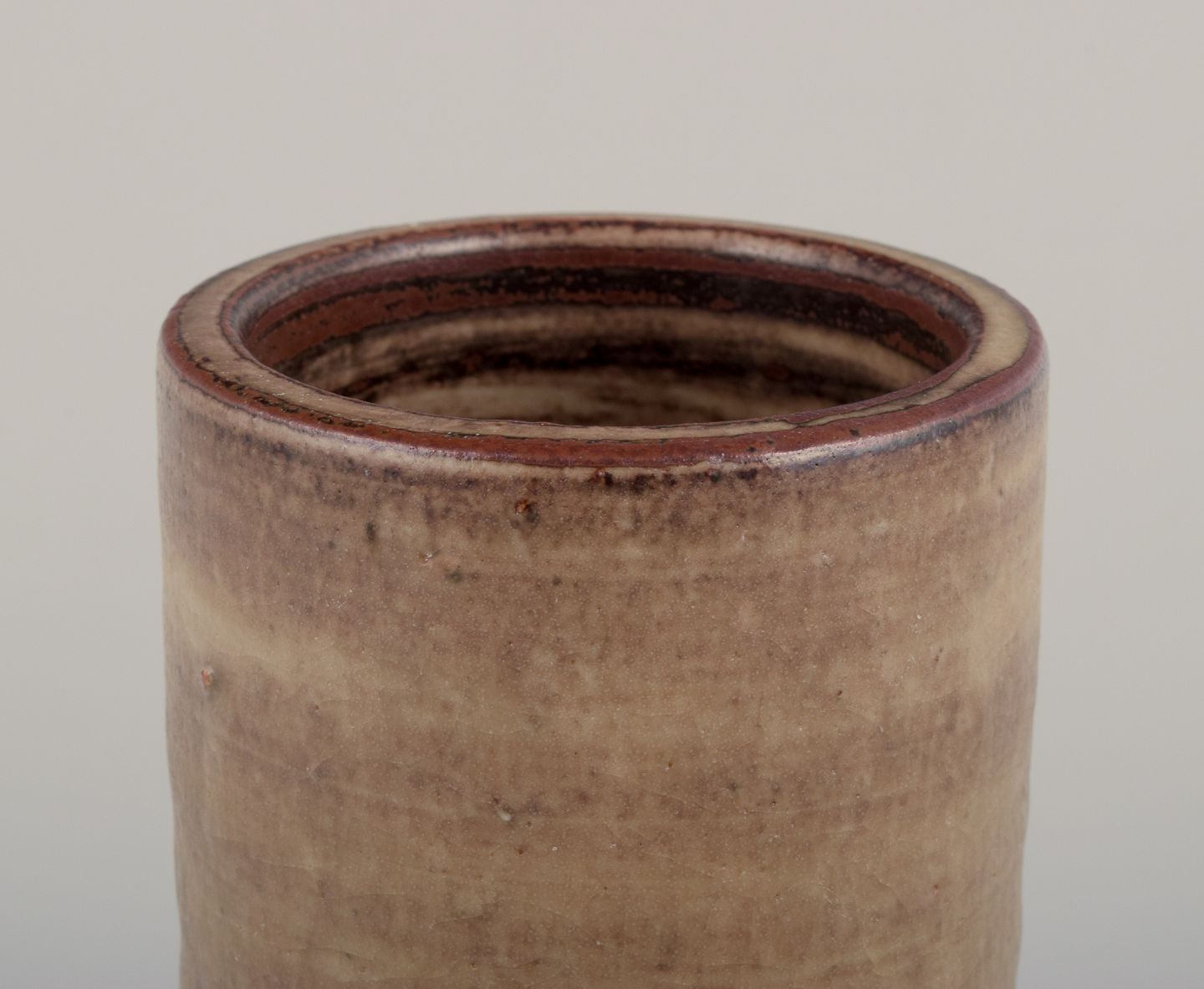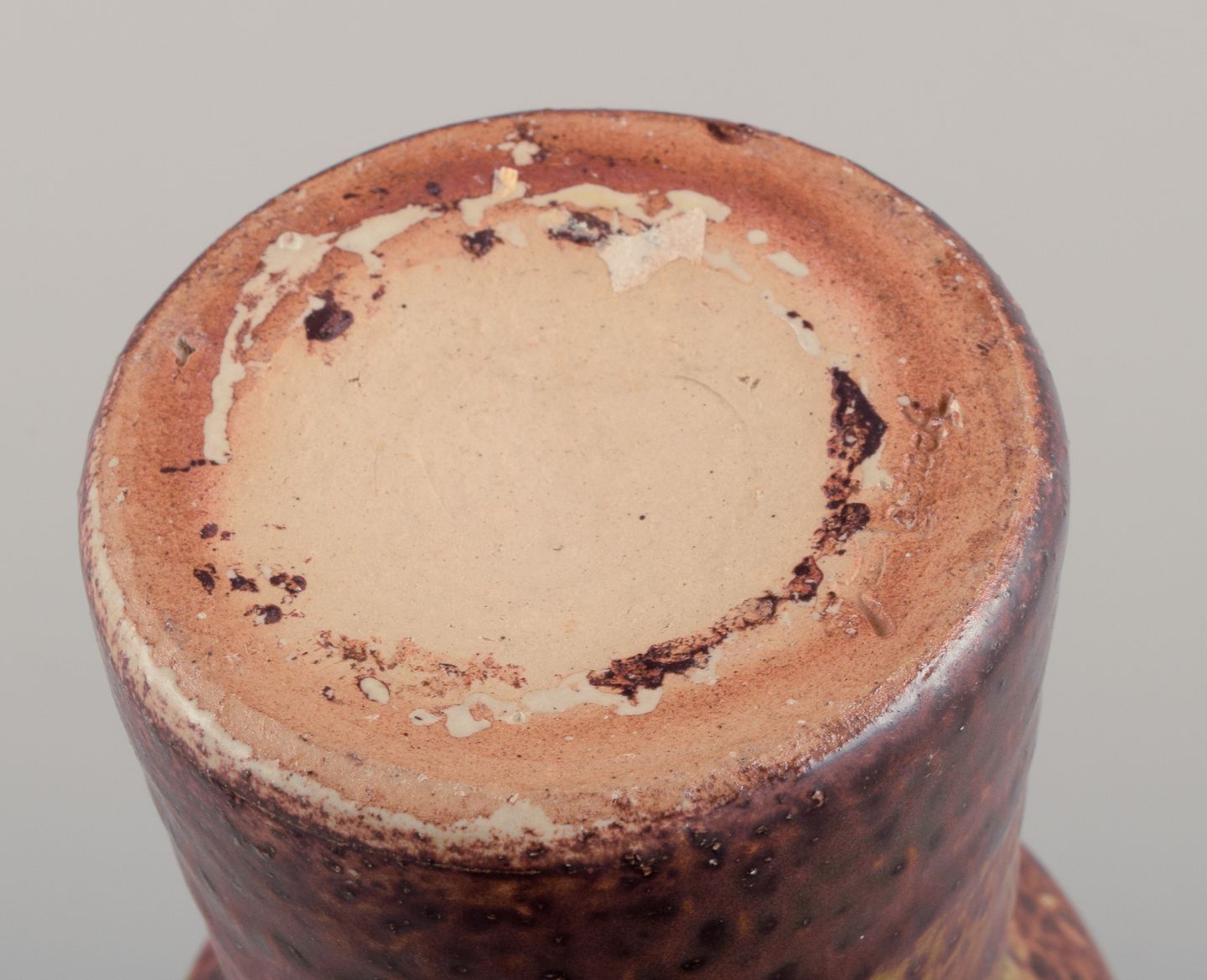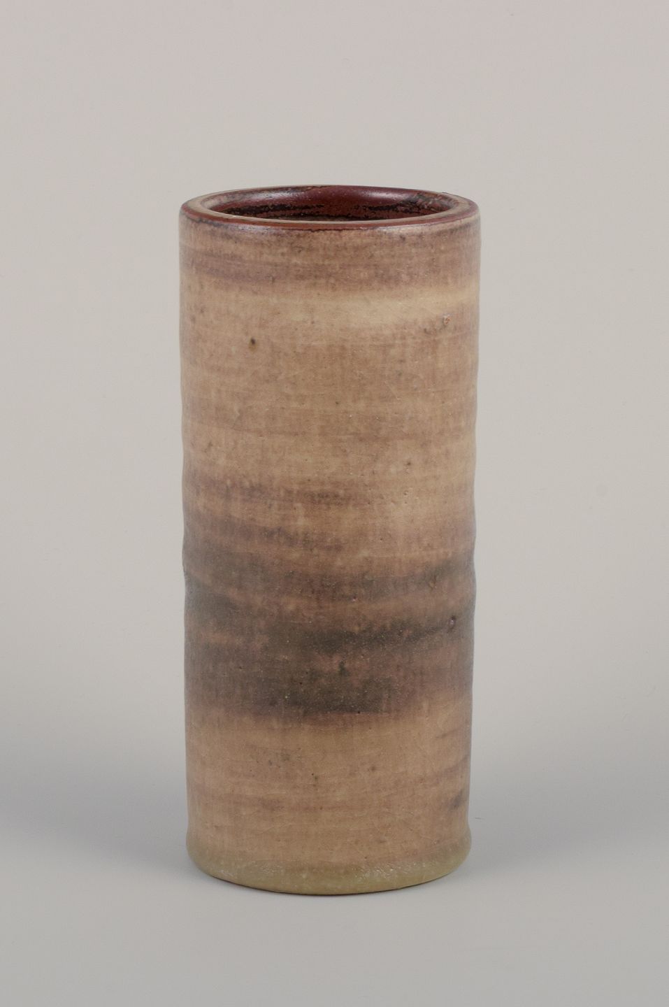 Mobach, Holland, to unikavaser. Glasur i brungrønlige toner. Den høje vase med glansfuld overflade.