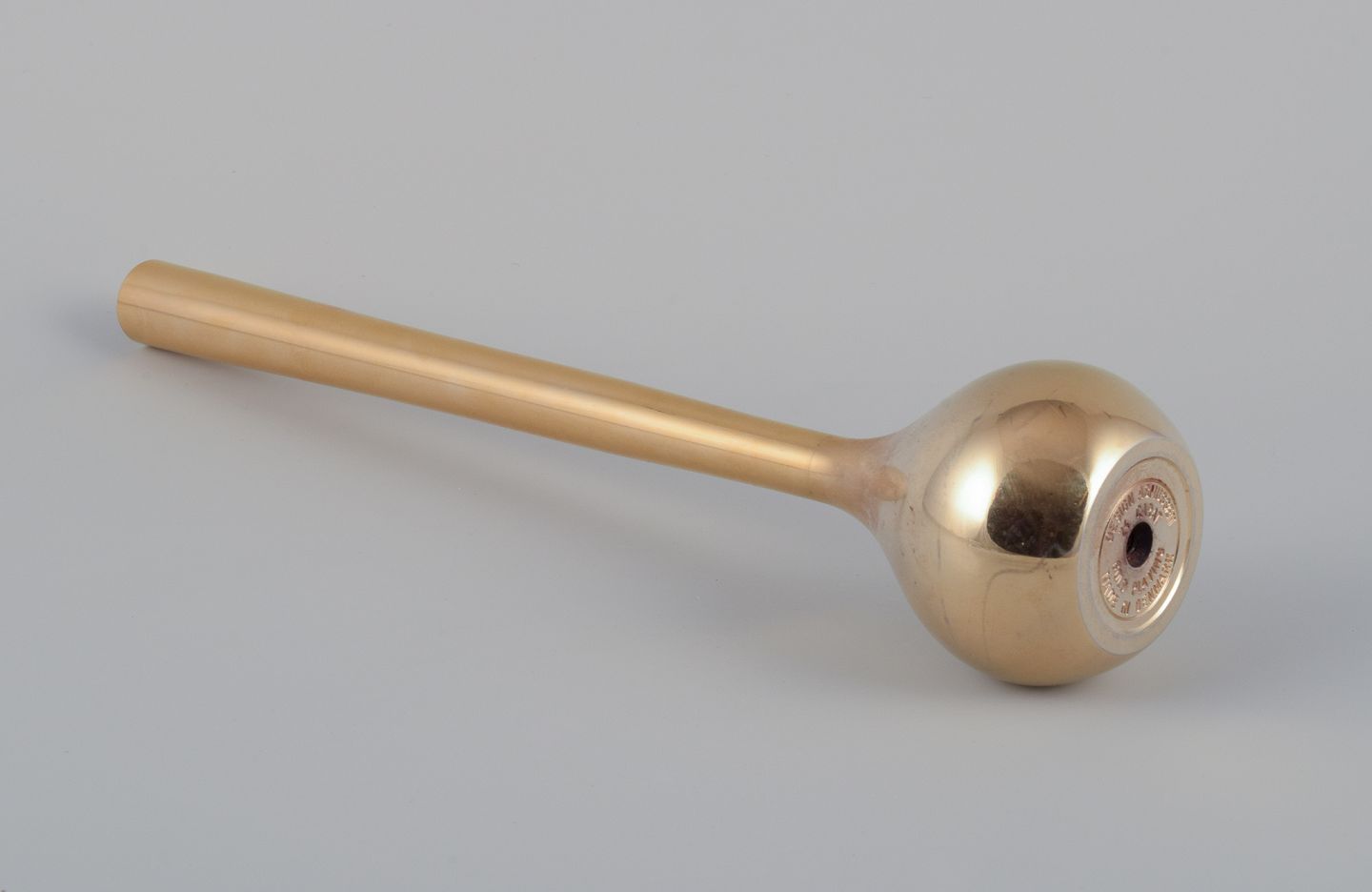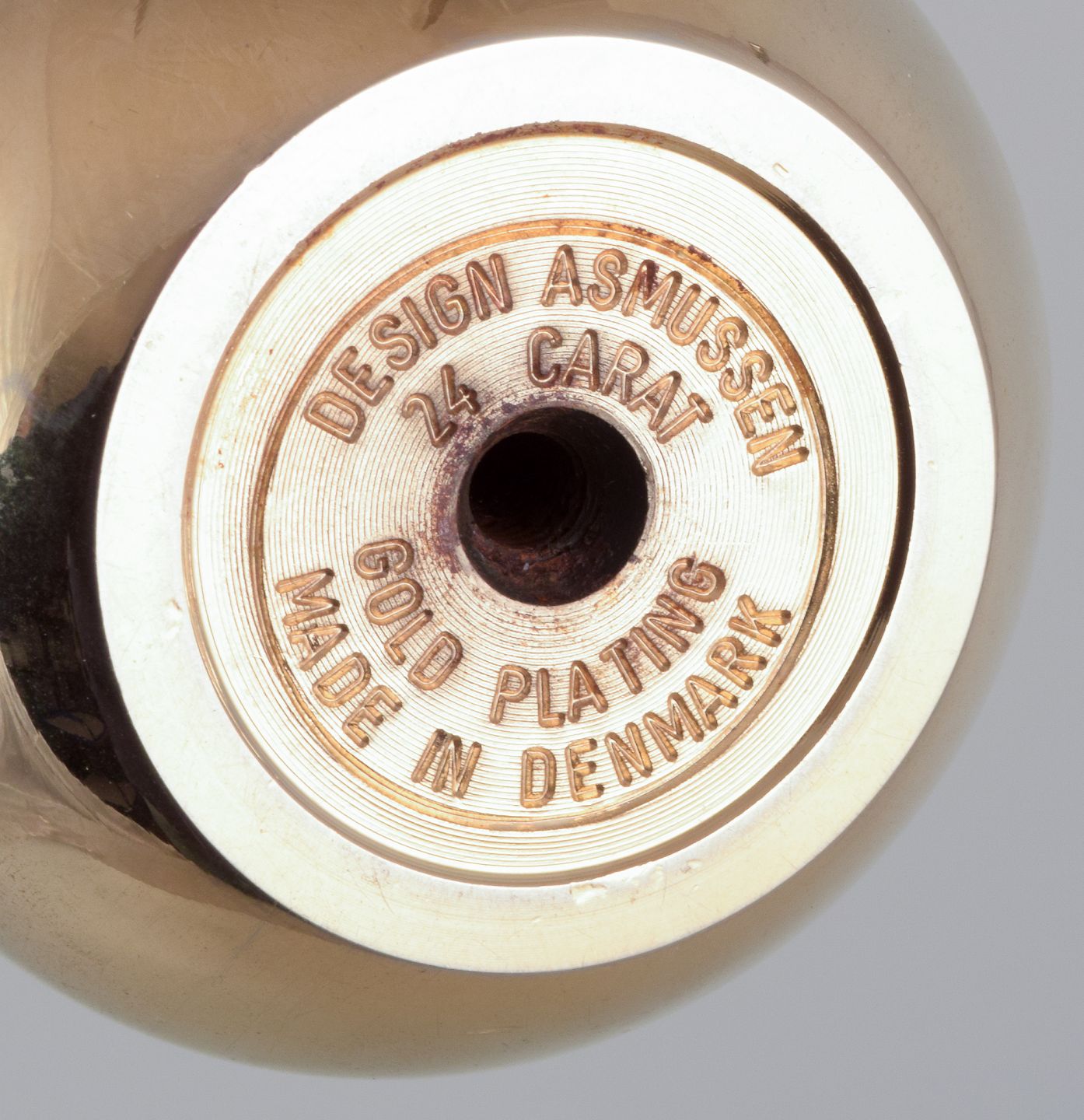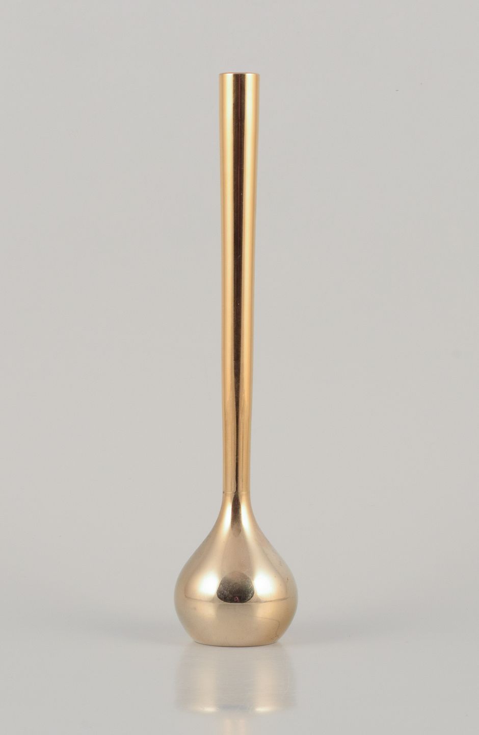 Otto Rasmussen for Design Asmussen. Høj og smalhalset messingvase belagt med 24 karat guld. Dansk design. Ca. 1970’erne. Perfekt stand. Stemplet. Mål: H 26,5 cm. x D 5,5 cm.