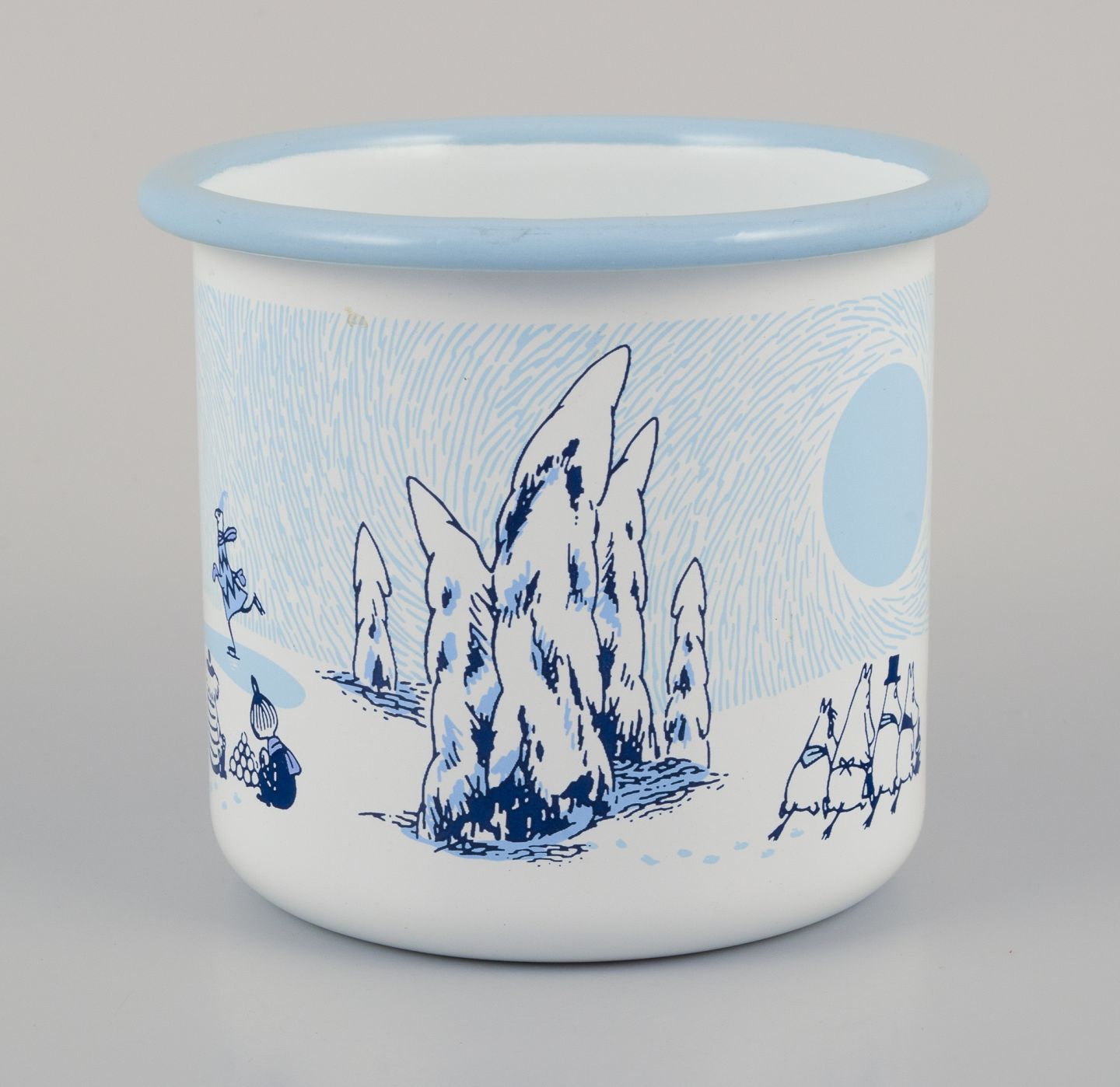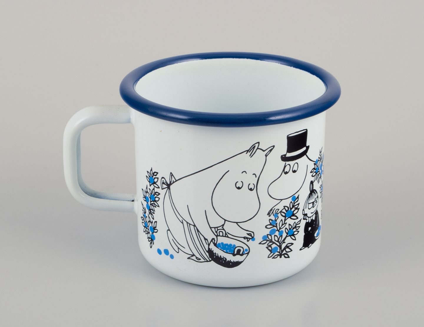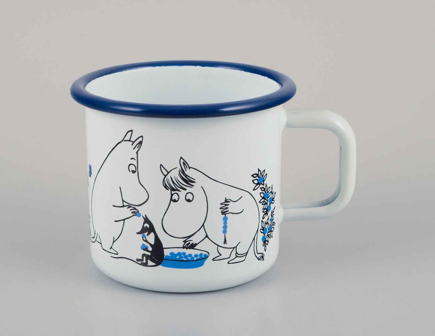 Muurla, Finland. To krus i emalje med hank. Motiv af Mumitrolde. 2000-tallet. Perfekt stand. Stemplet. Mål: D 9,5 cm. uden hank x H 8,0 cm.