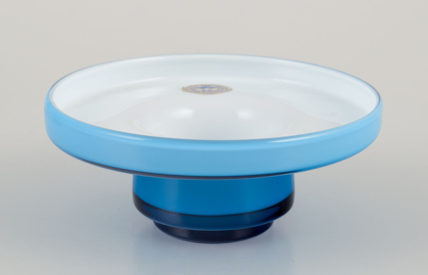 Michael Bang for Holmegaard. Tre ”Palet” lysestager i turkis mundblæst kunstglas. 1960/70'erne. Med mærkater. I perfekt stand. Mål: D 9,5 cm. x 4,0 cm.