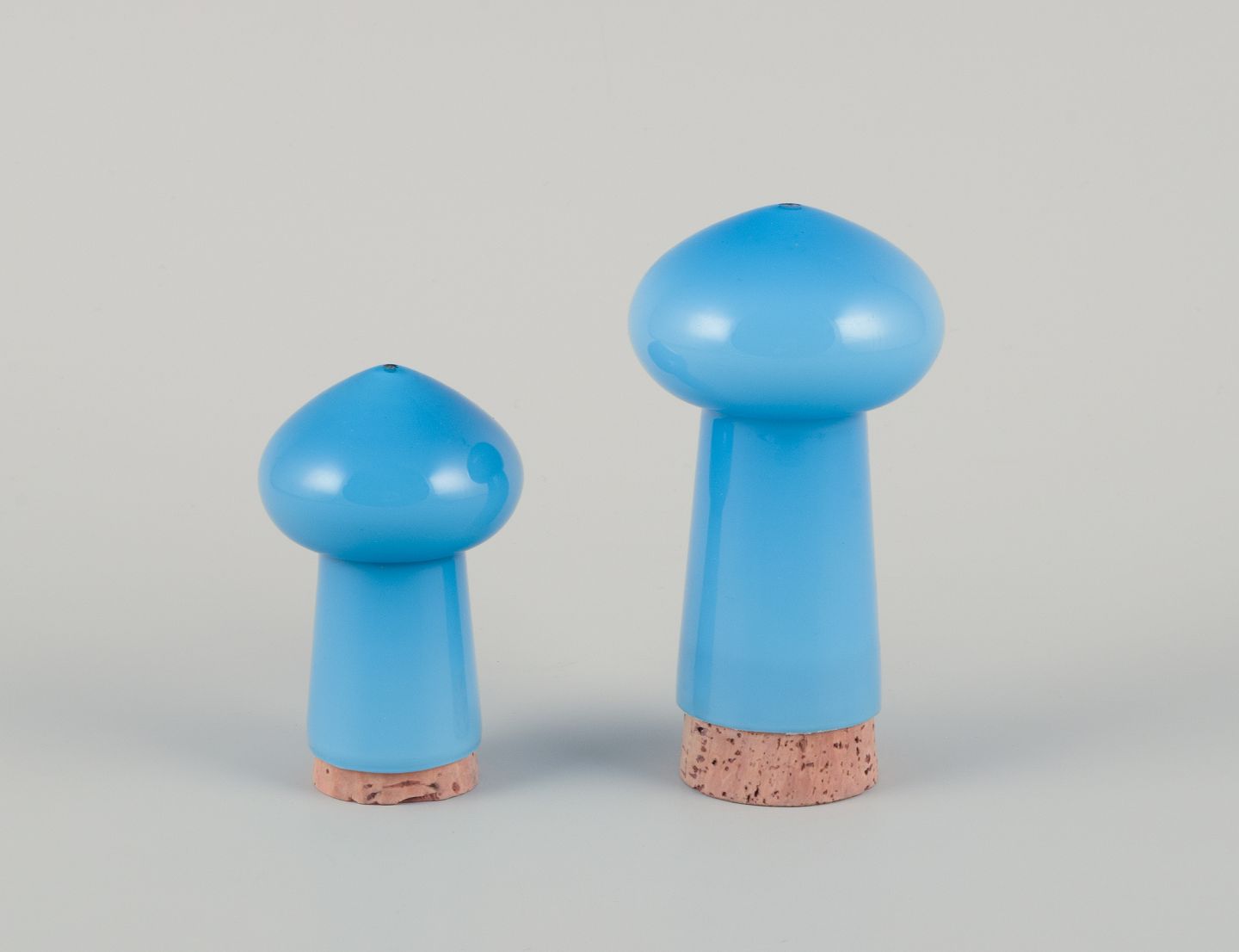 Michael Bang for Holmegaard. ”Palet” salt og peber sæt i turkis mundblæst kunstglas. Korkpropper. 1960/70'erne. Med mærkat. I perfekt stand. Højeste: H 11,5 cm. x 6,0 cm.