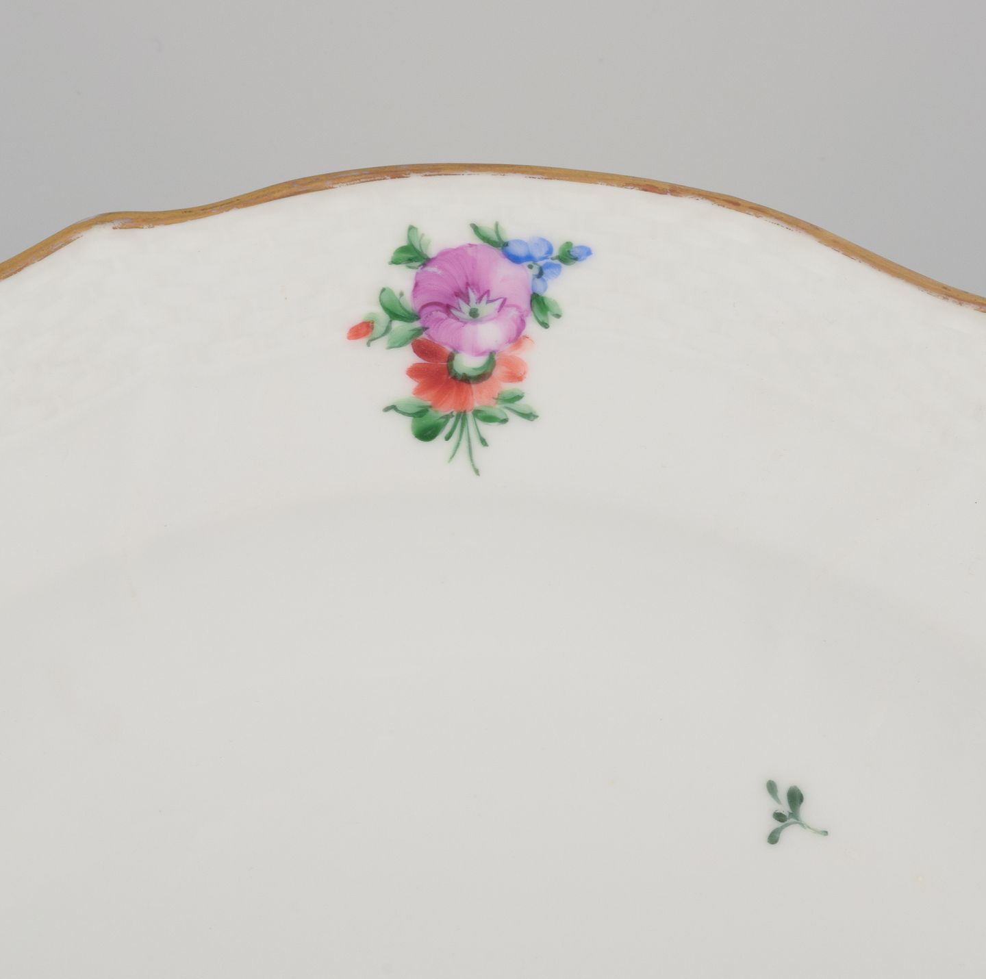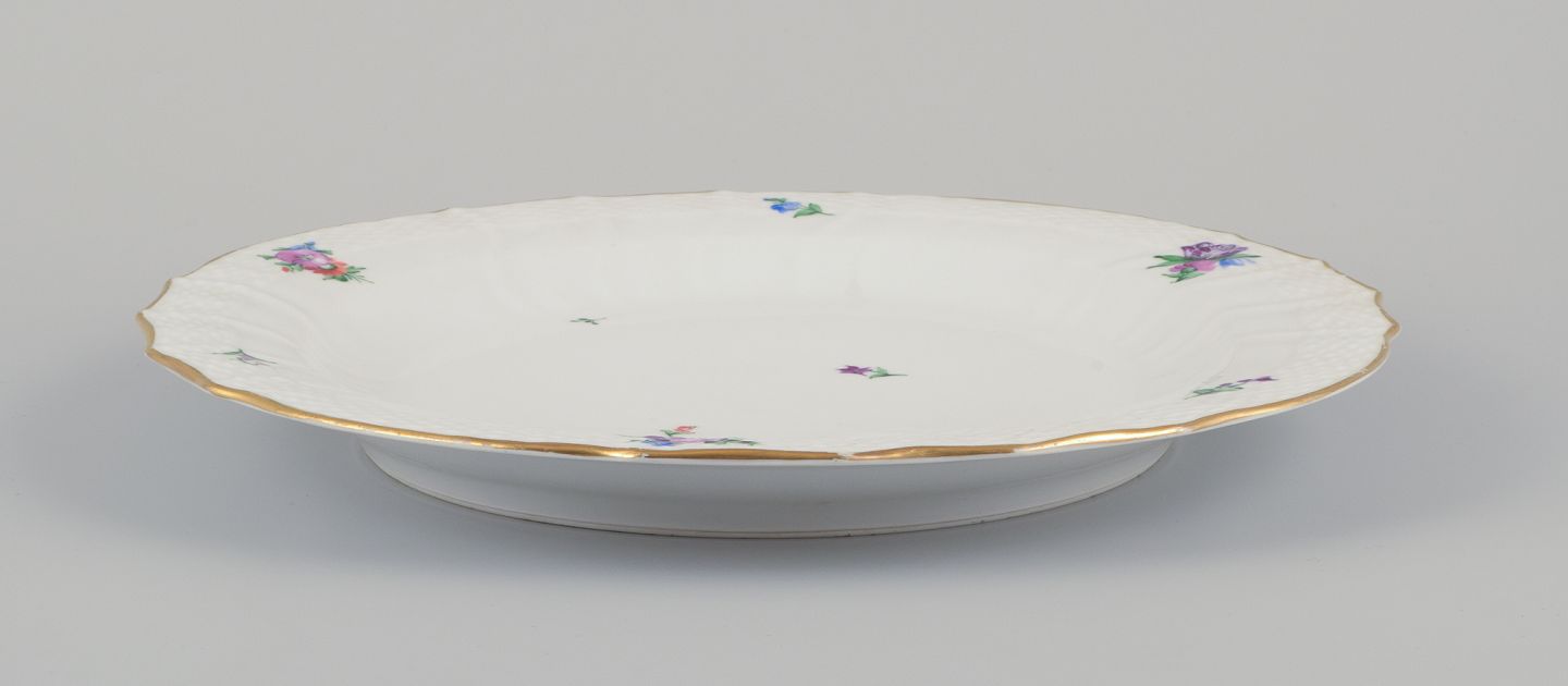 Royal Copenhagen Saksisk Blomst. Stort rundt serveringsfad i porcelæn. Håndmalet med polykrome blomster. Guldkant.