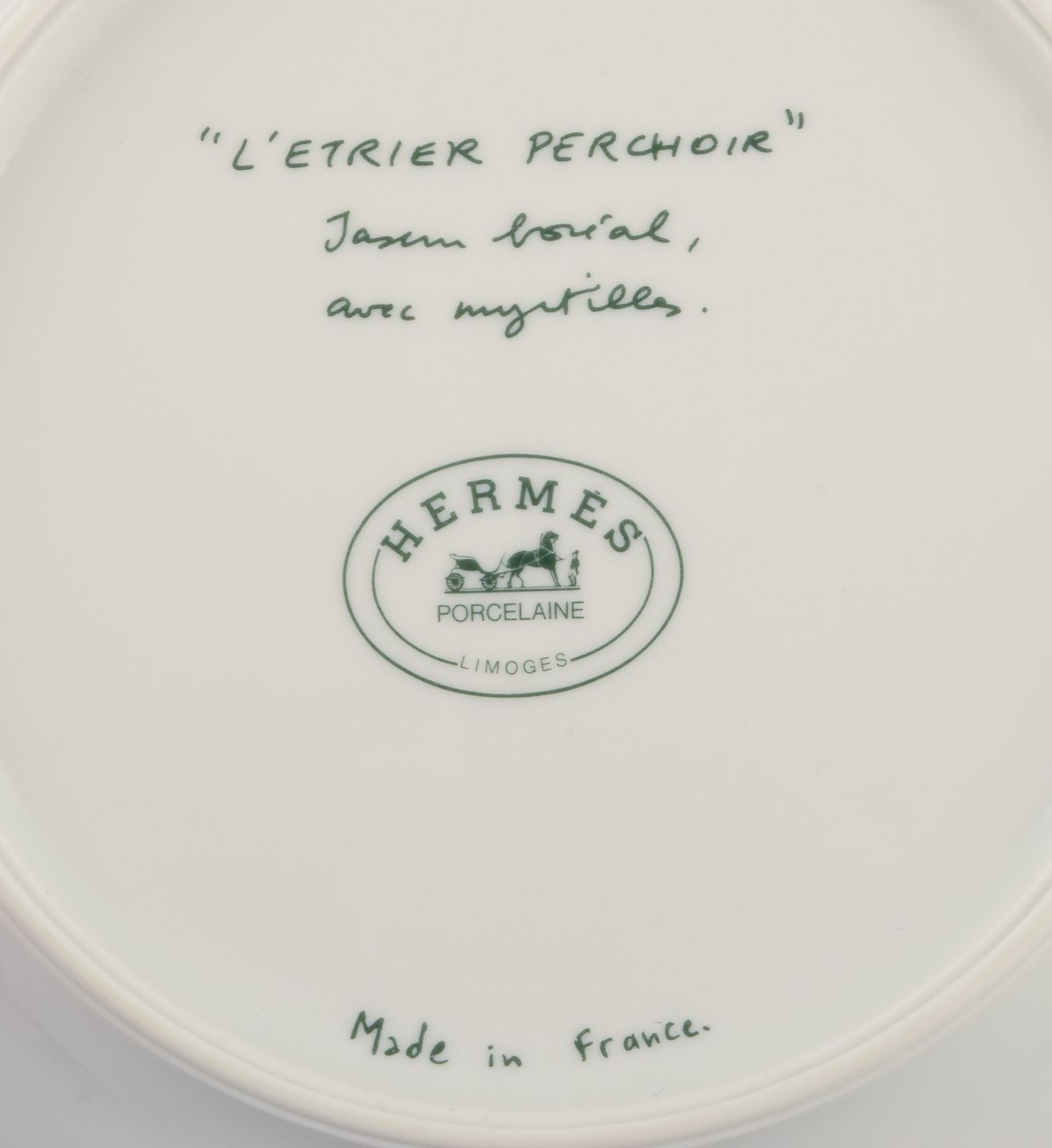 Hermès, Frankrig. To porcelænstallerkner med fuglemotiver. Fra ”L’etrier Perchoir” serien. Sent 1900-tallet. Stemplet. Perfekt stand. Mål: 21,0 cm. x 2,0 cm.