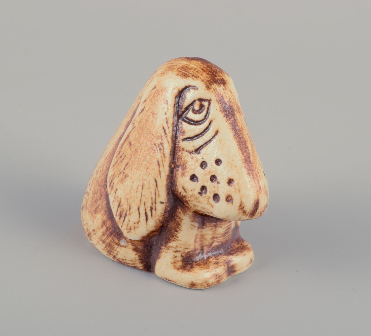 Lisa Larson for Gustavsberg, Sverige. Basset i glaseret keramik. Sent 1900-tallet. I flot stand. Signeret. Mål: L 4,5 cm. x H 4,5 cm.