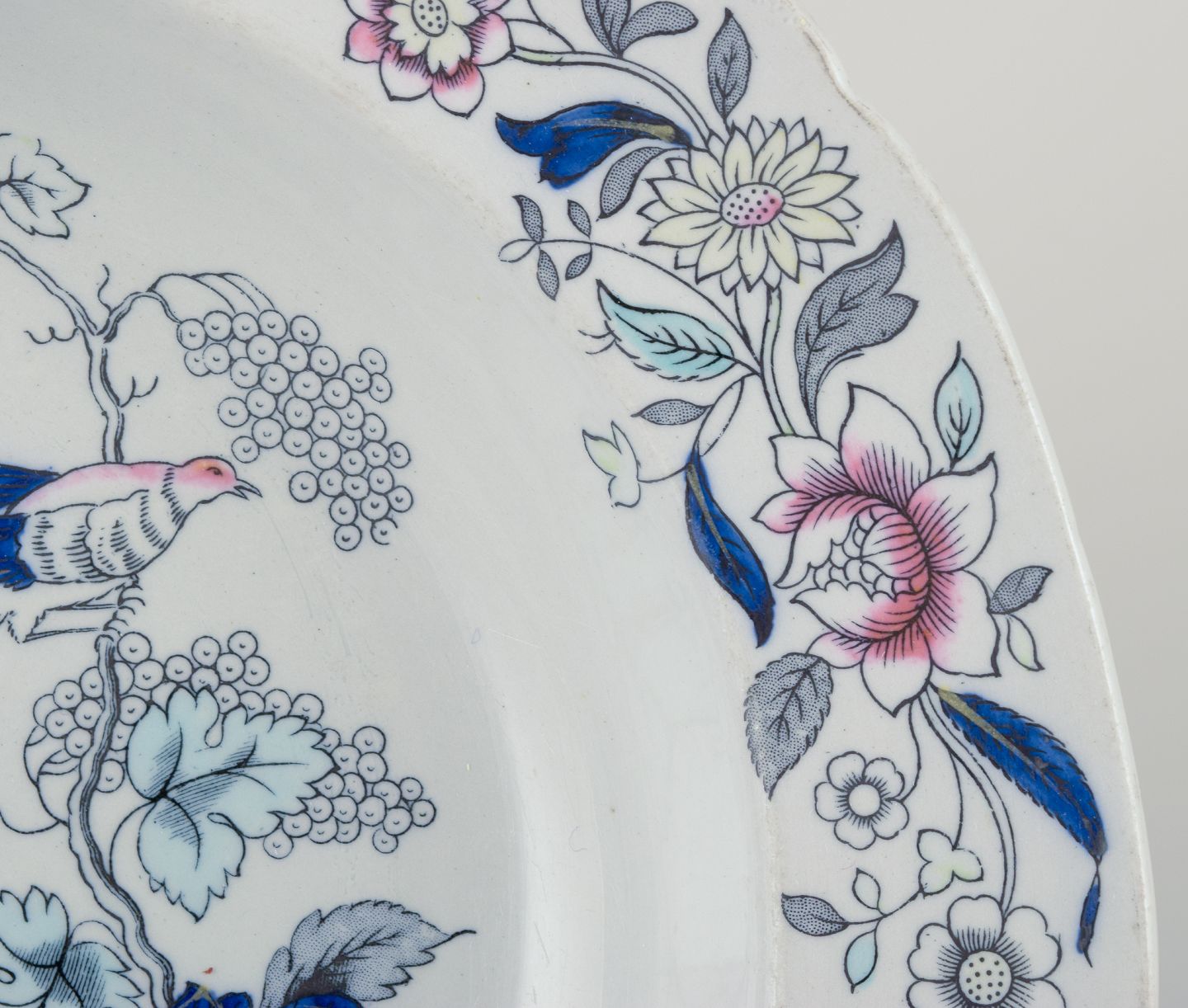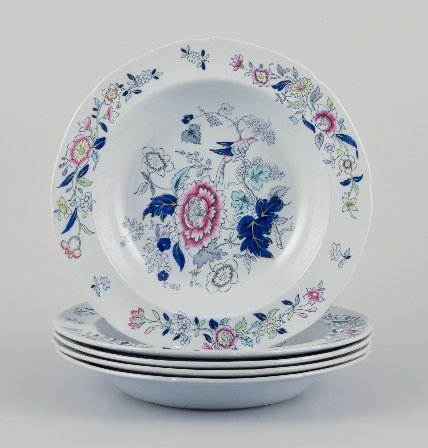 Copeland/Spode, England. Fem dybe tallerkner i fajance. Dekoreret med blomster og fuglemotiver. Ca. 1930’erne. I perfekt stand. Stemplet. Mål: D 24,5 cm. x H 3,8 cm.