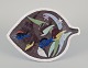 Stort fad i keramik med svømmende fisk, søstjerner og havplanter.
