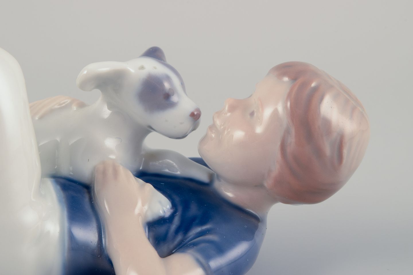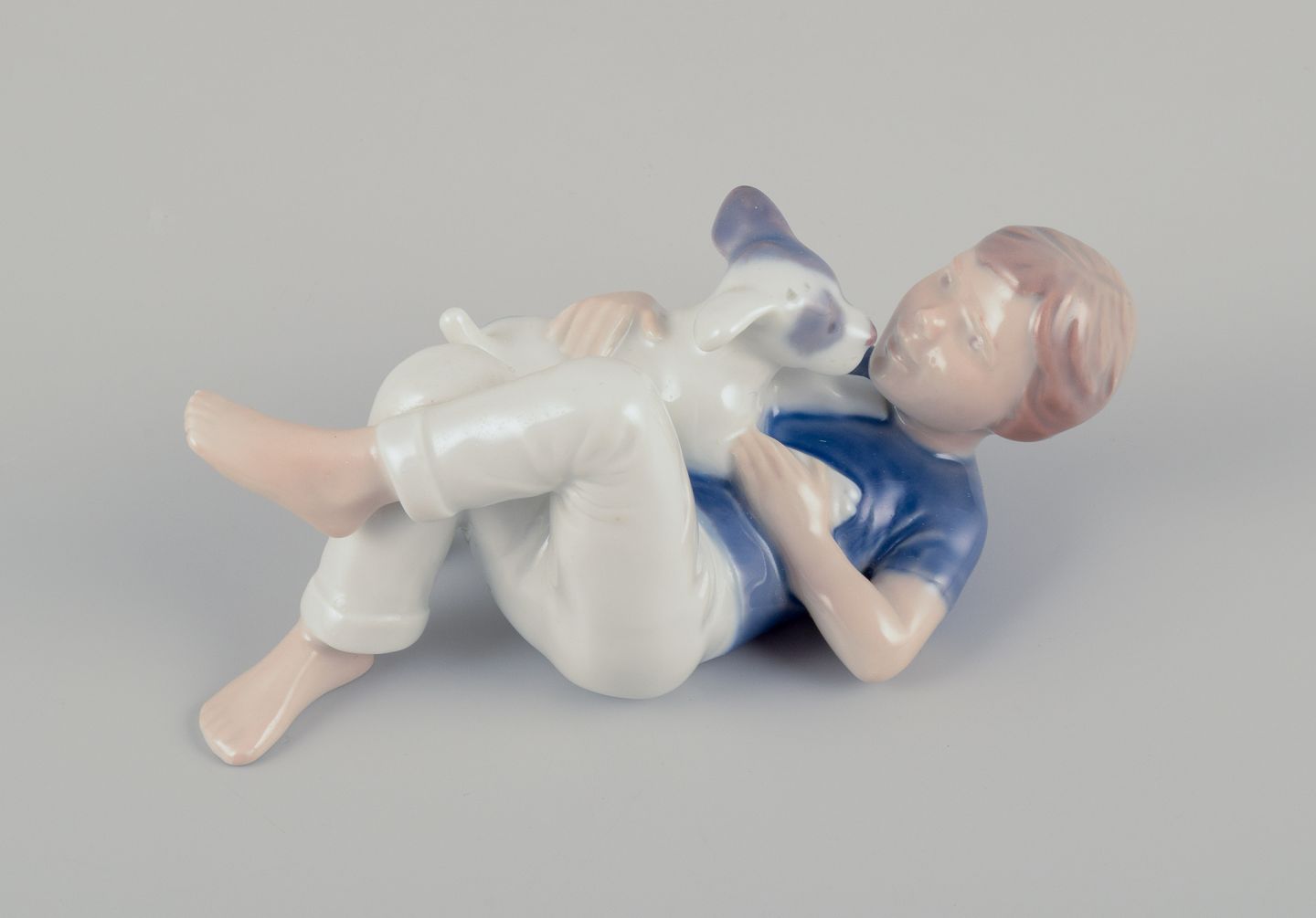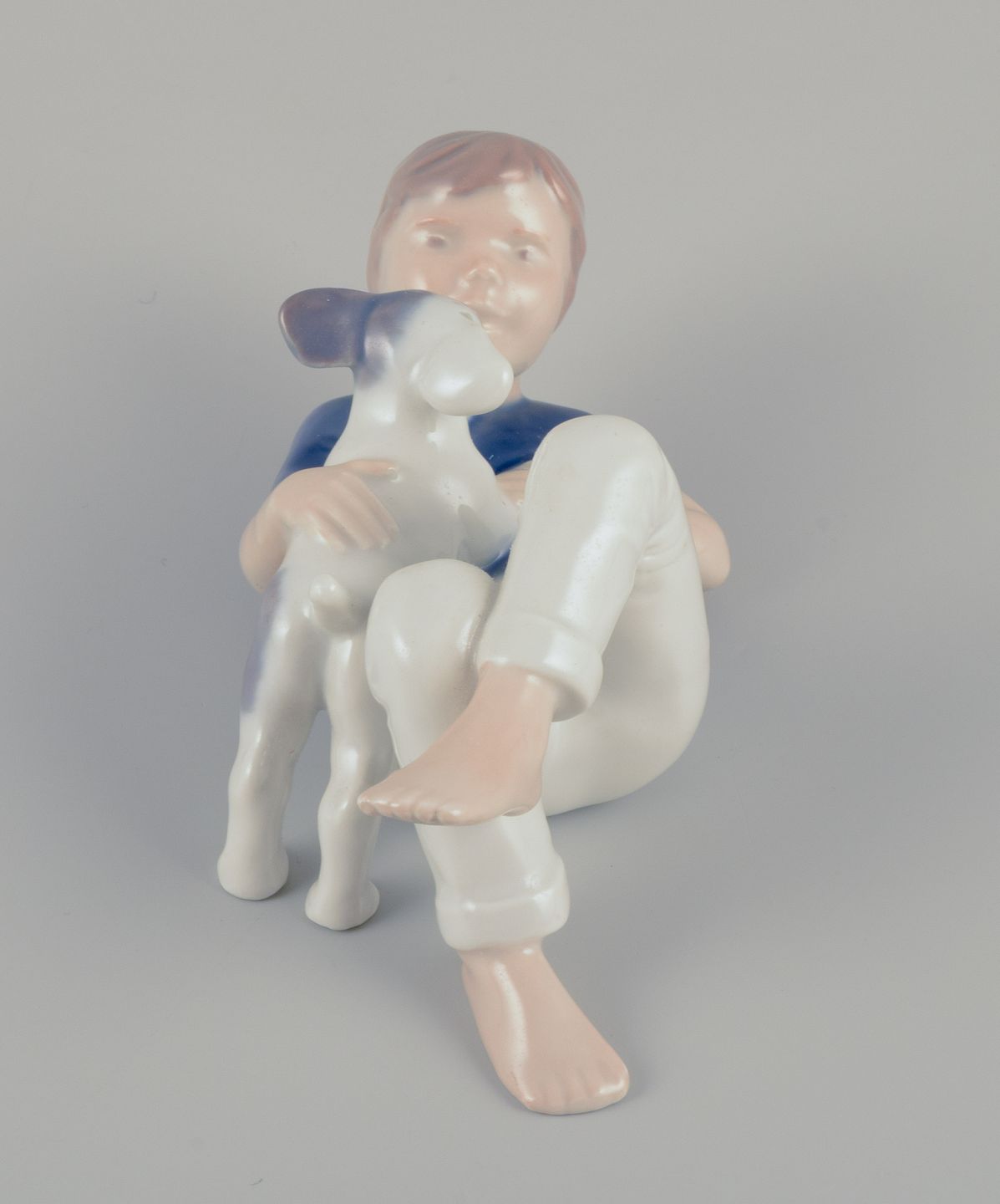Porcelænsfigur af dreng med hundehvalp. Sjælden figur.