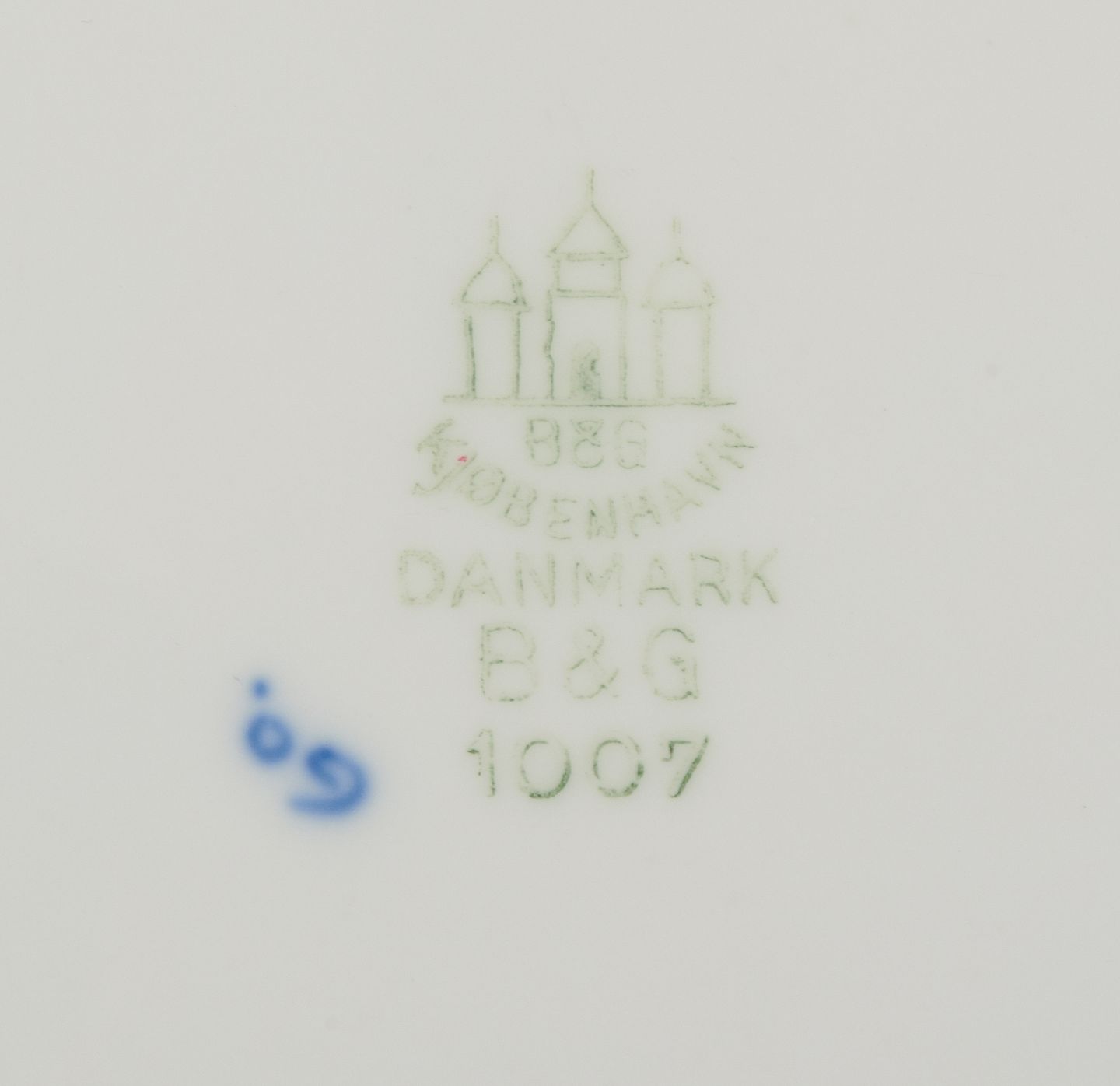 Et sæt på fem Musselmalet små frokosttallerkner i hotel/restaurantporcelæn.