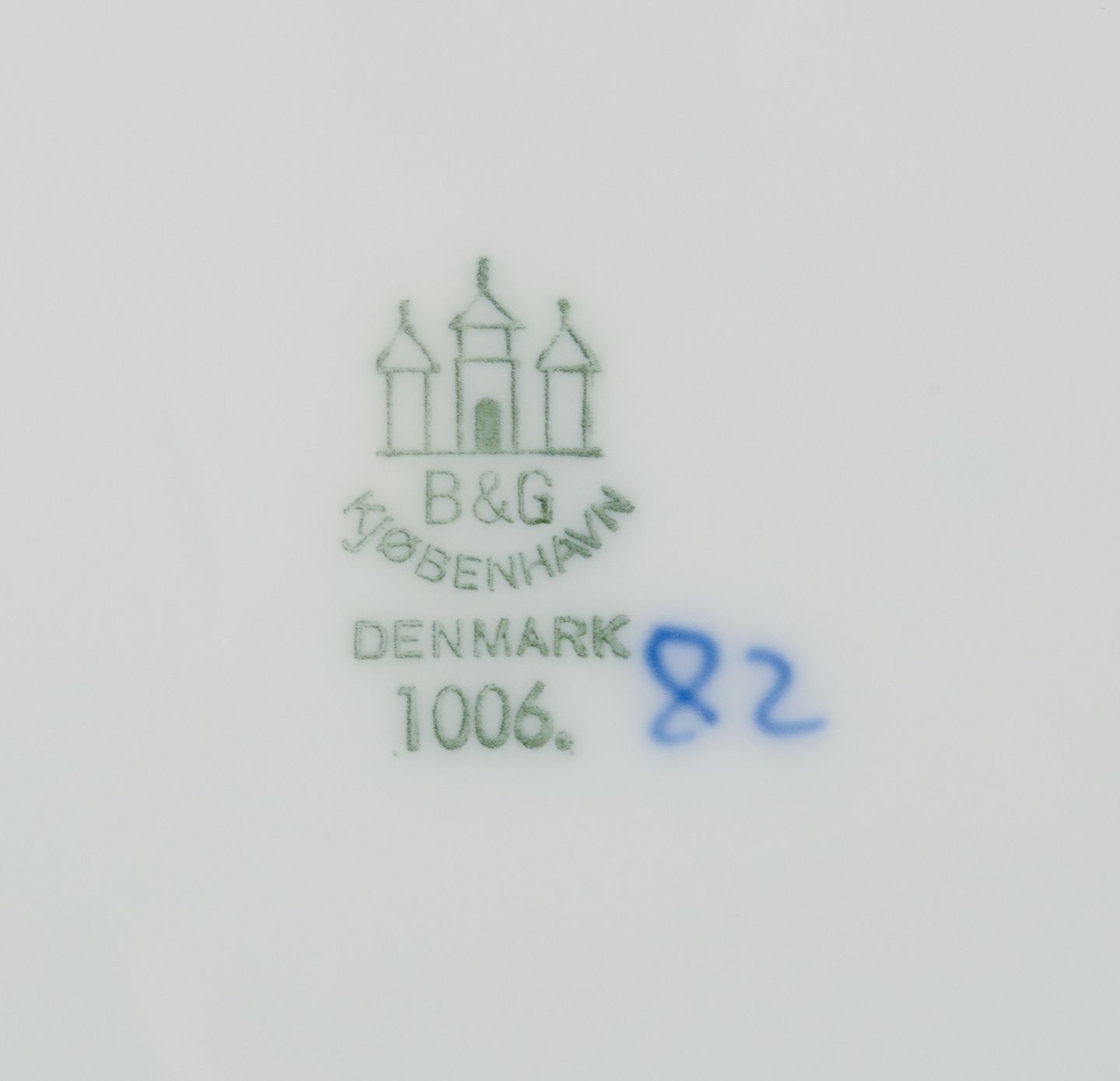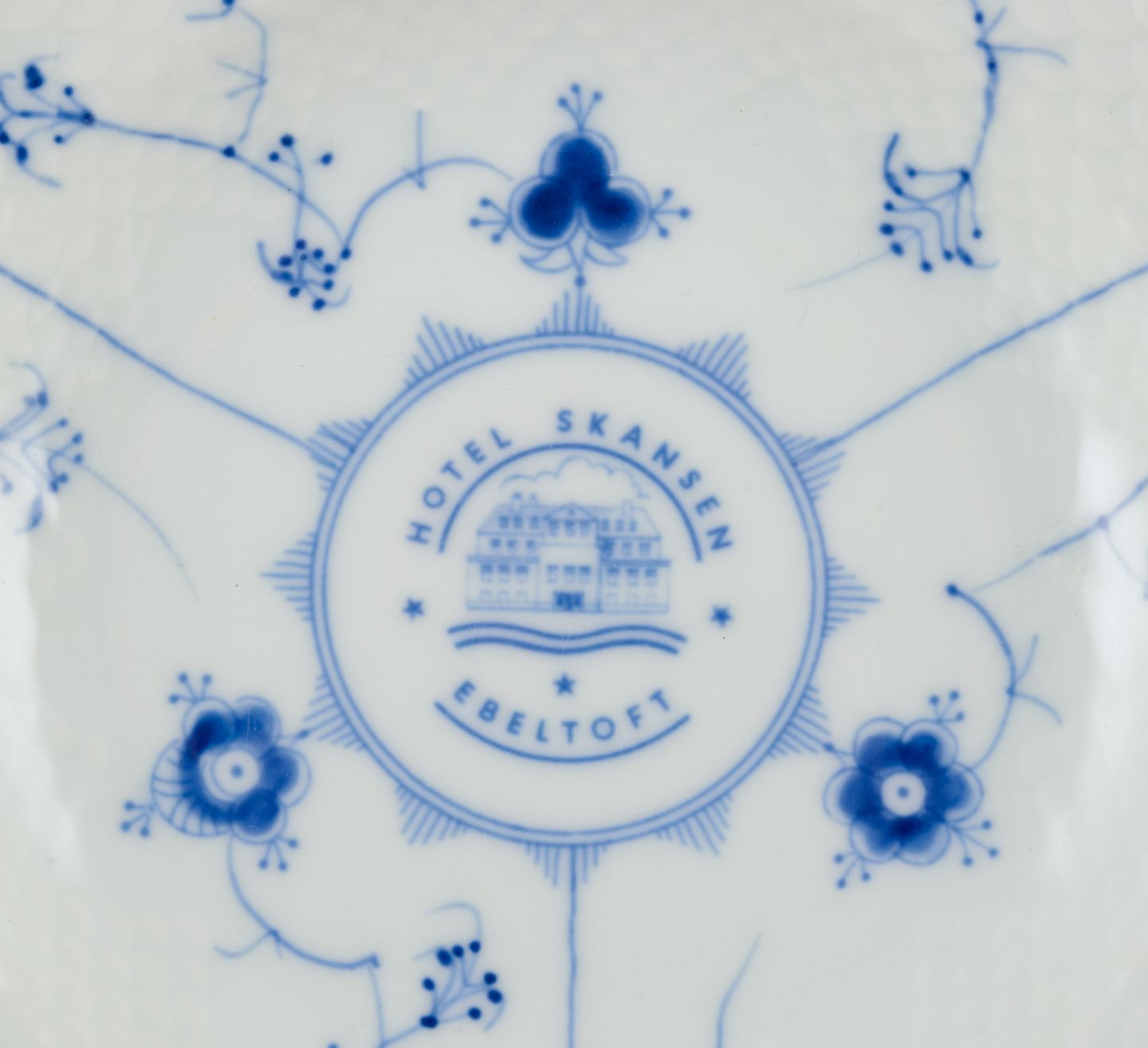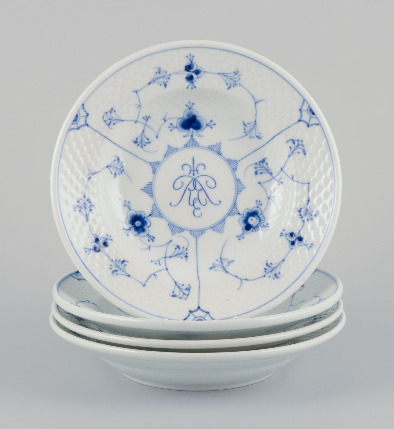 Et sæt på fire Musselmalet dybe tallerkner i hotel/restaurantporcelæn.