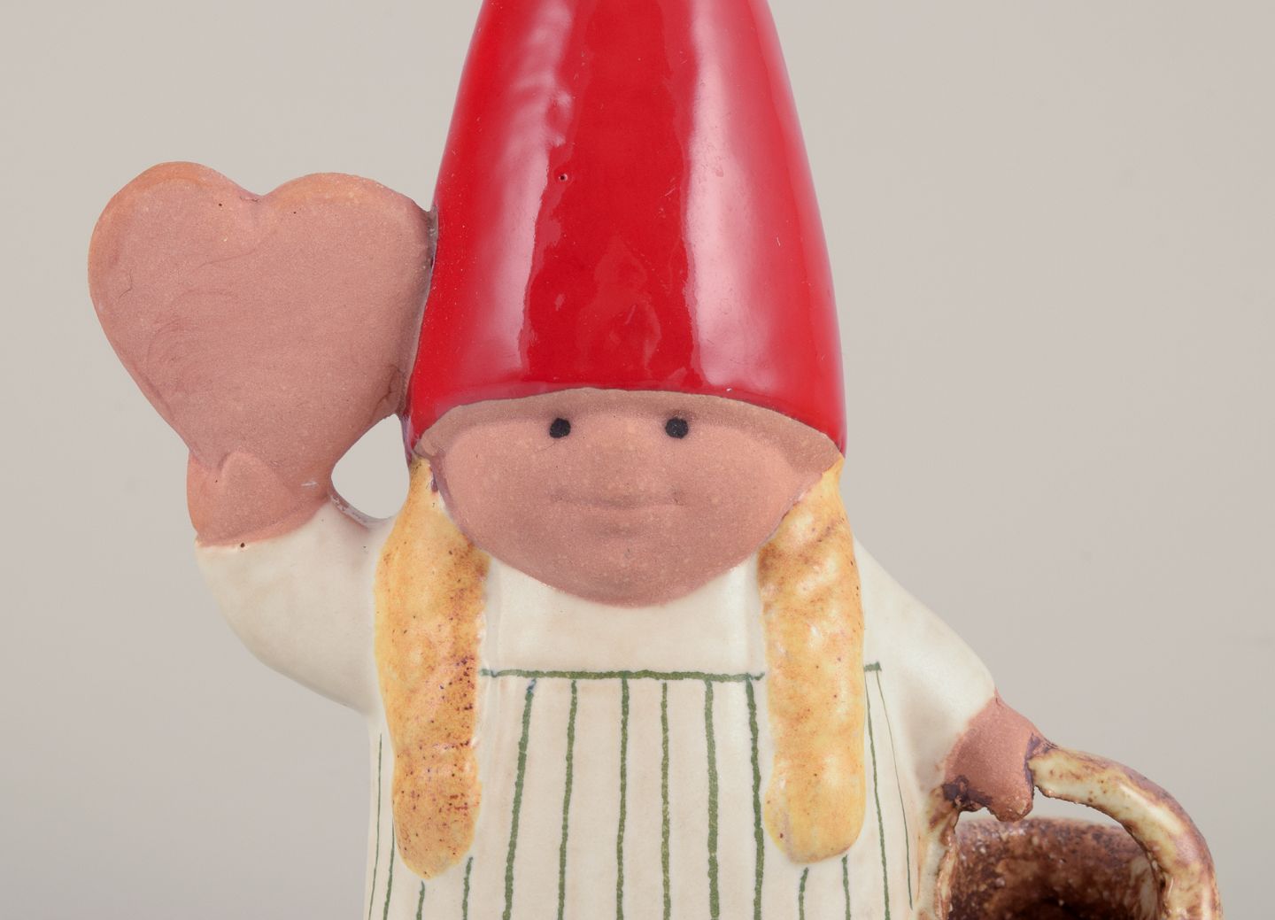 Lisa Larson for Gustavsberg. Nissepige med fletkurv og honninghjerte. Sent 1900-tallet. I perfekt stand. Signeret. Måler: B 11,0 cm. x H 14,0 cm.