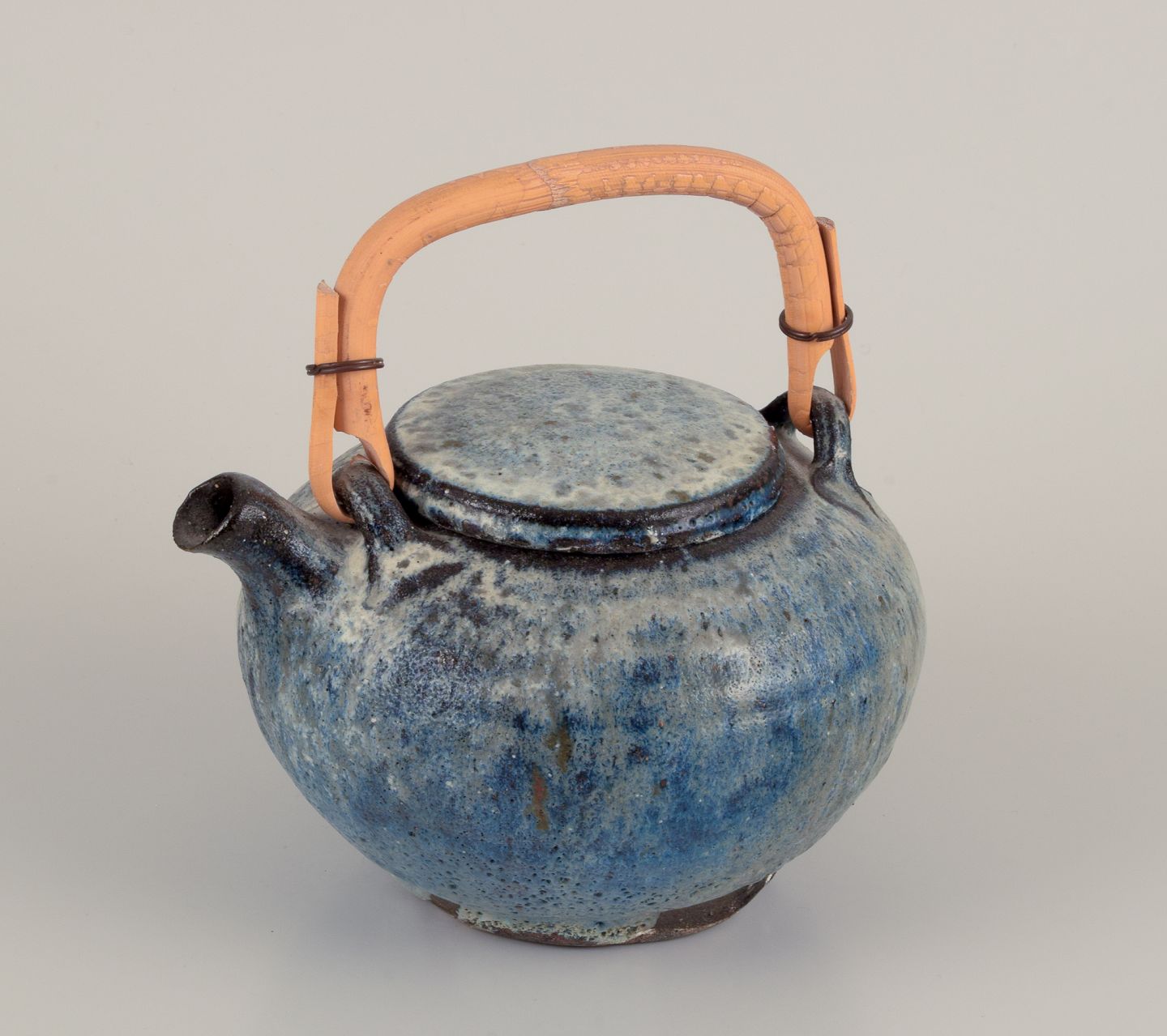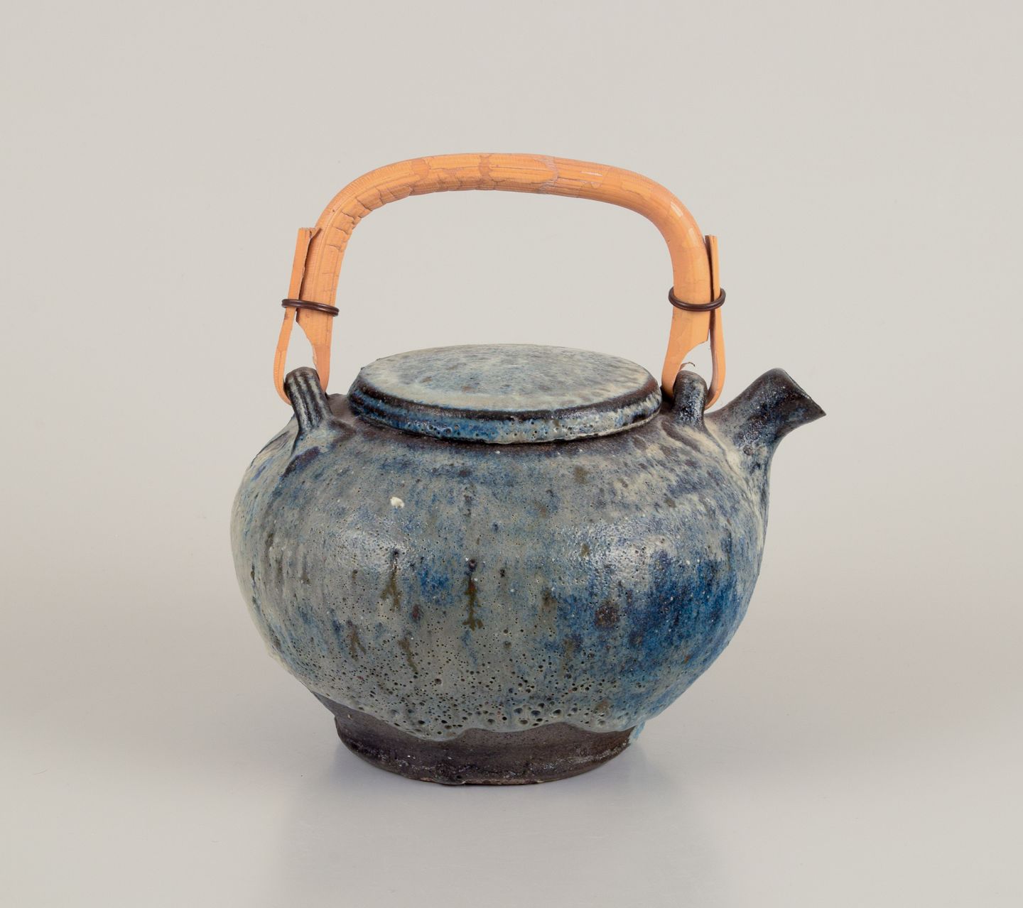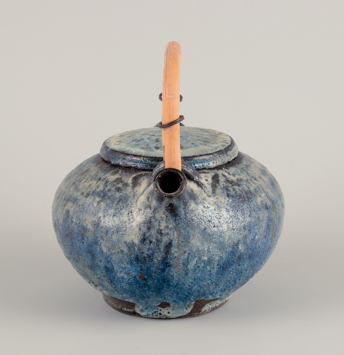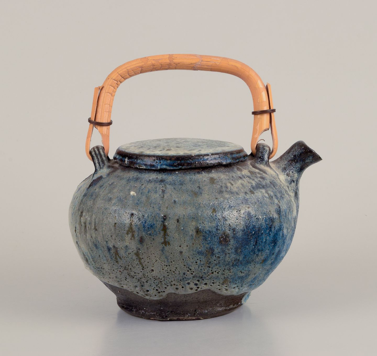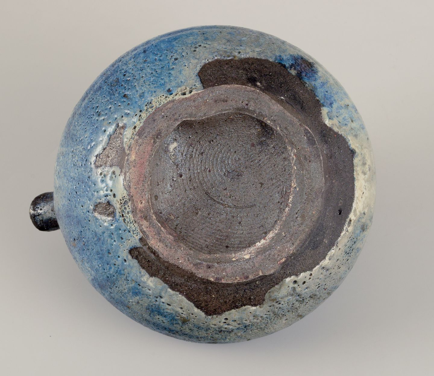 Unika tekande i keramik, raku teknik, flydende lava glasur i blågrå toner.