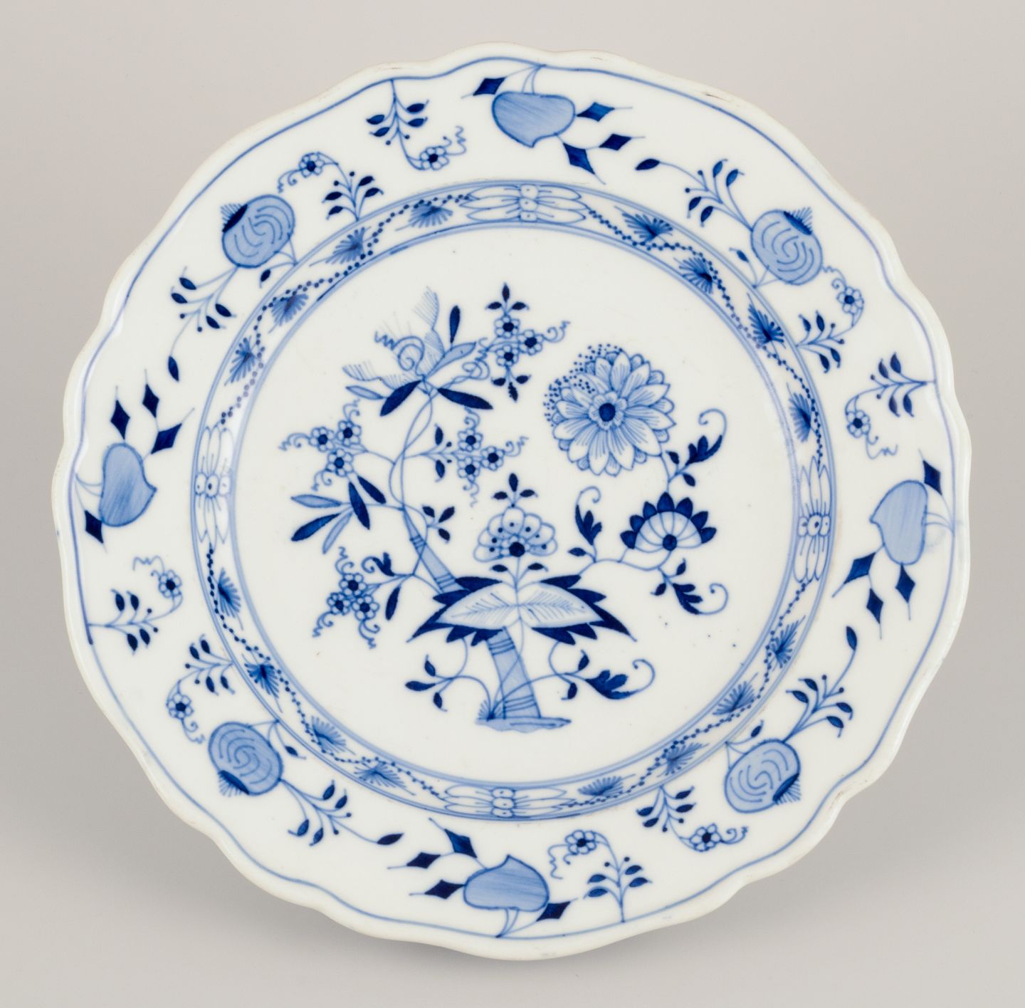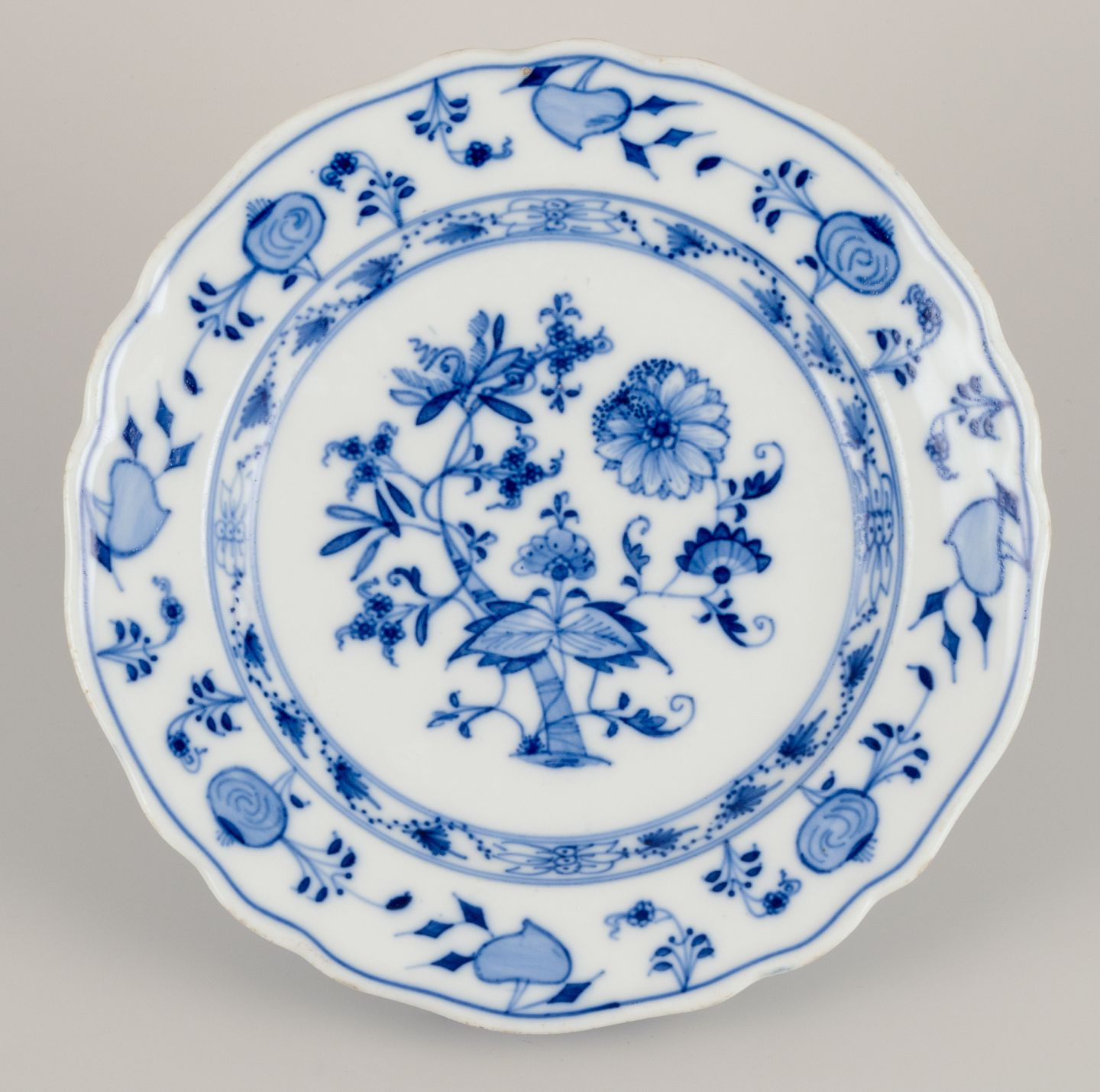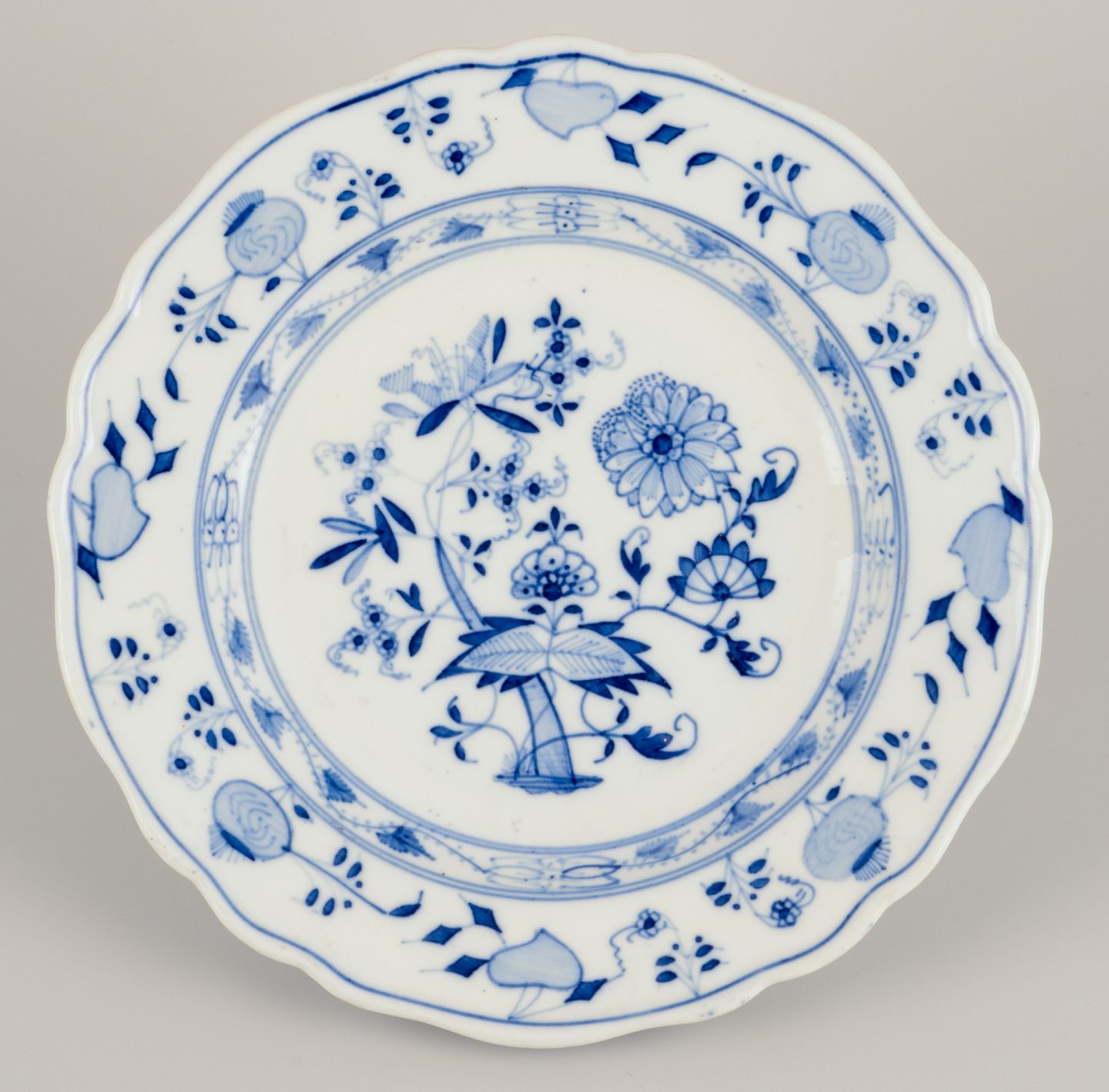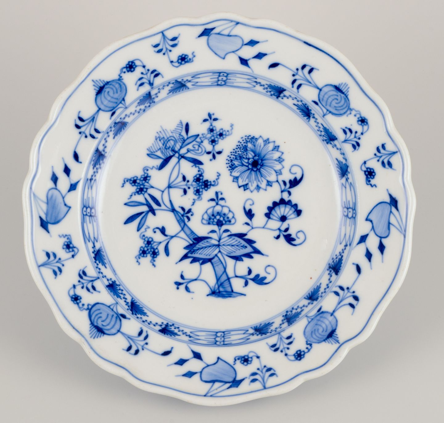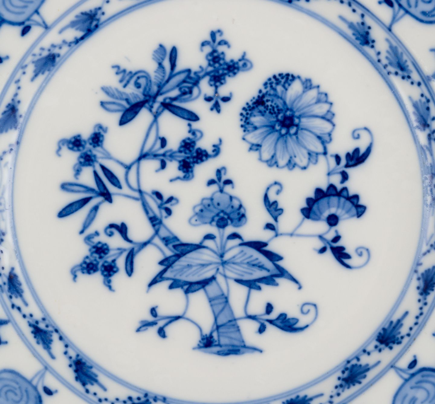 Et sæt på seks middagstallerkner i porcelæn. Løgmønstret.