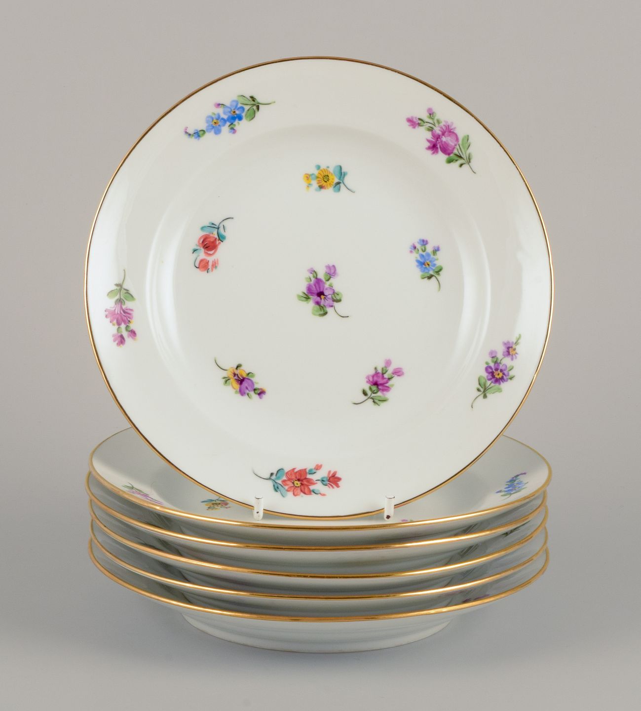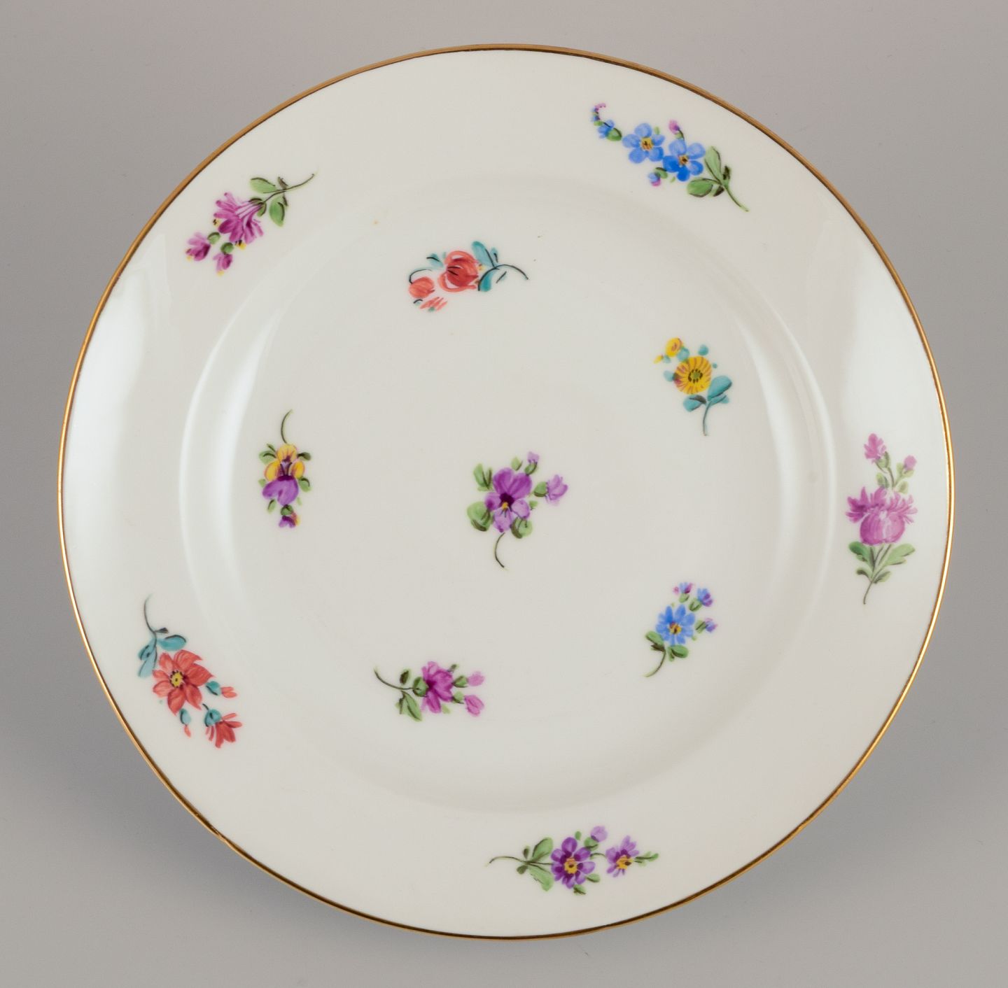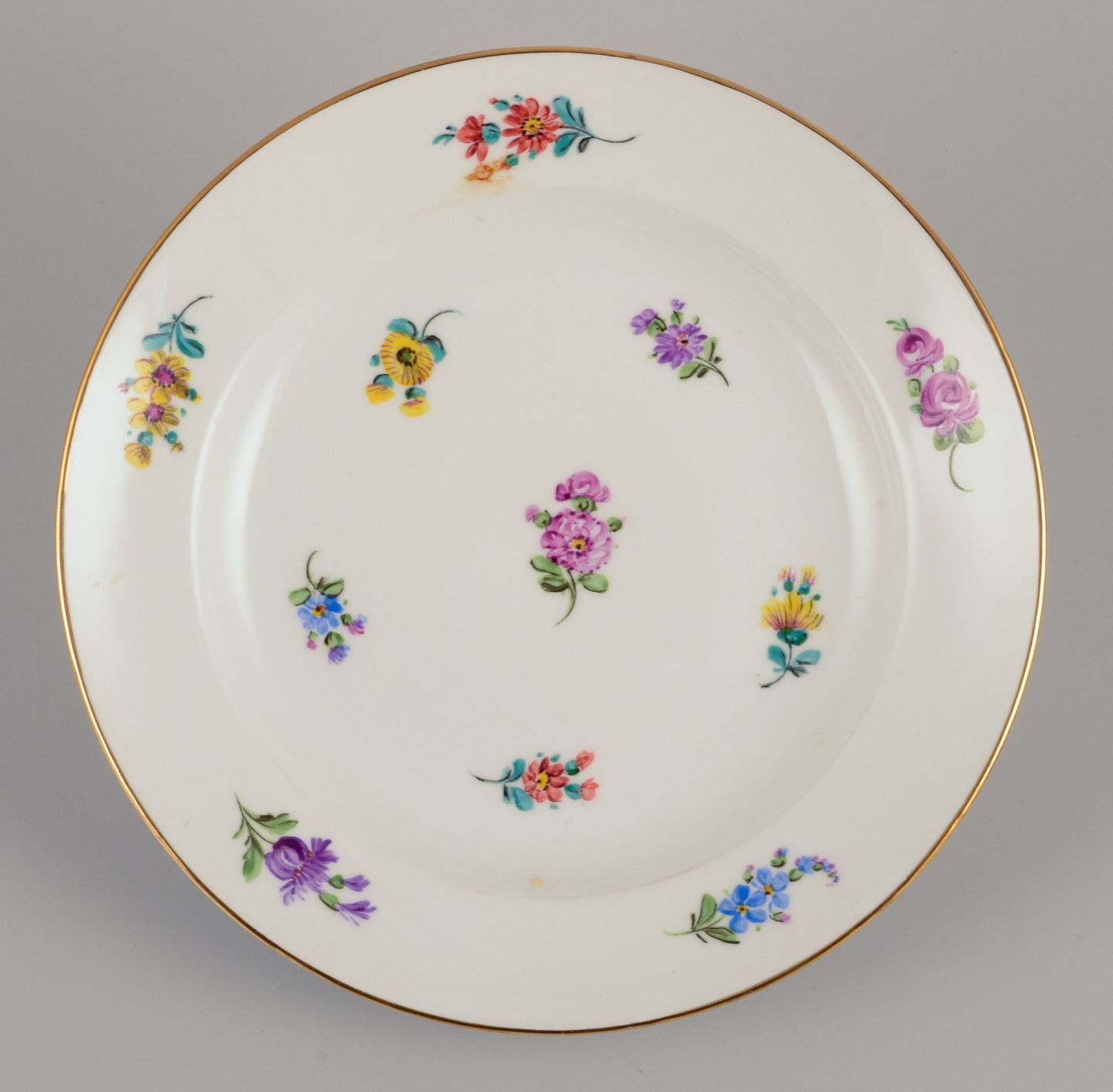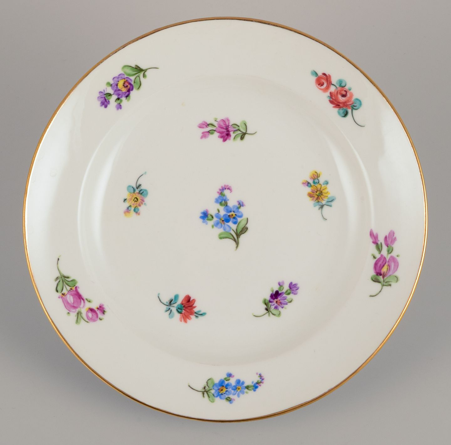 Håndmalet med polykrome blomstermotiver, guldkant.