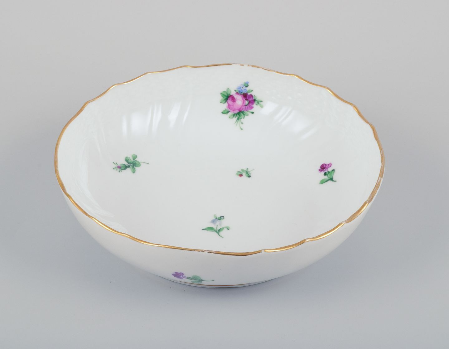 Royal Copenhagen Saksisk Blomst, rund skål i porcelæn.