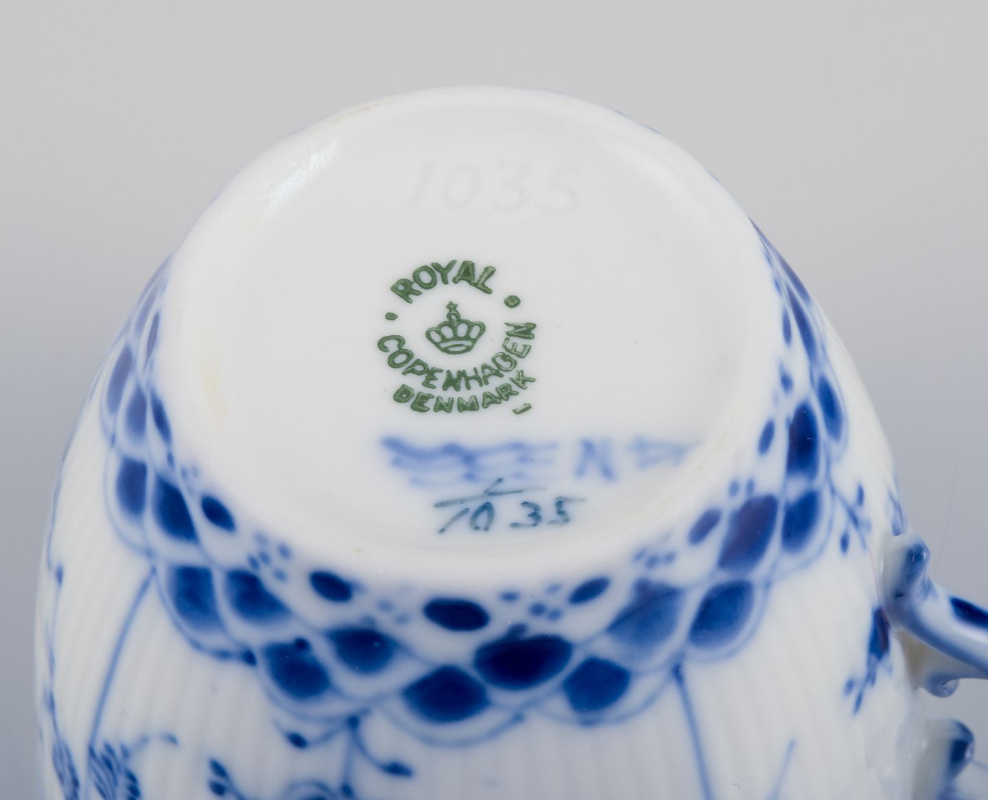 Royal Copenhagen Musselmalet Helblonde, seks par kaffekopper. Modelnummer: 1/1035. Datering: 1959-1960. Stemplet. I perfekt stand. Første sortering. Kop: D 7,0 cm. uden hank x H 6,2 cm. Underkop: D 13,8 cm.