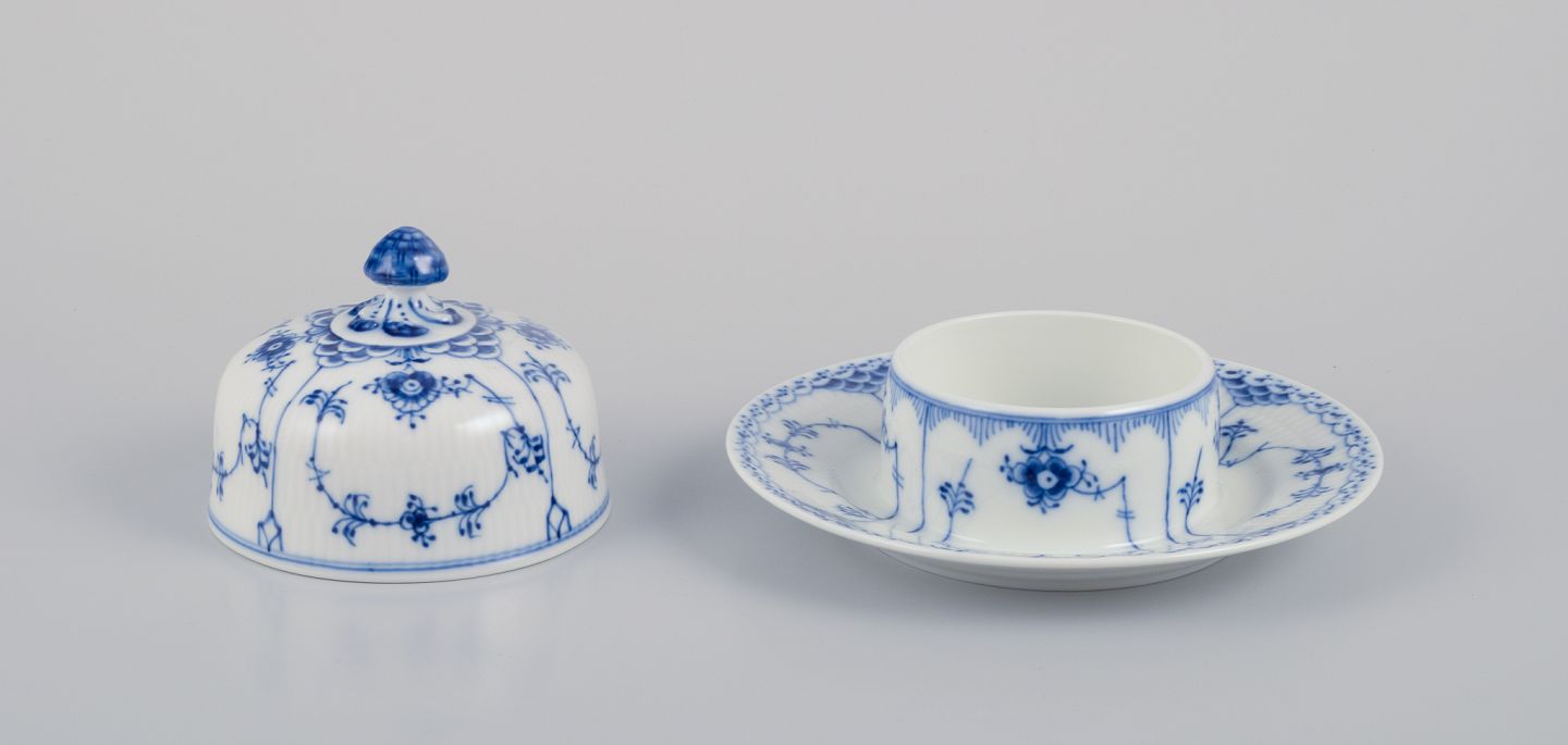 Royal Copenhagen Musselmalet Halvblonde, smørkrukke. Modelnummer: 1/502. Datering: 1969-1979 Stemplet. I perfekt stand. Anden sortering. Mål: D 17,0 cm. x H 9,0 cm.