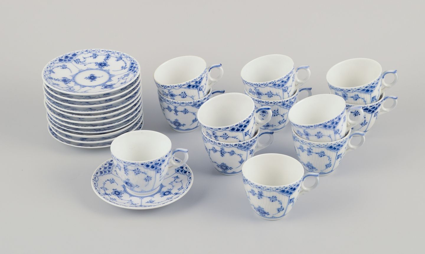 Royal Copenhagen Musselmalet Halvblonde, et sæt på tolv par mokkakopper.