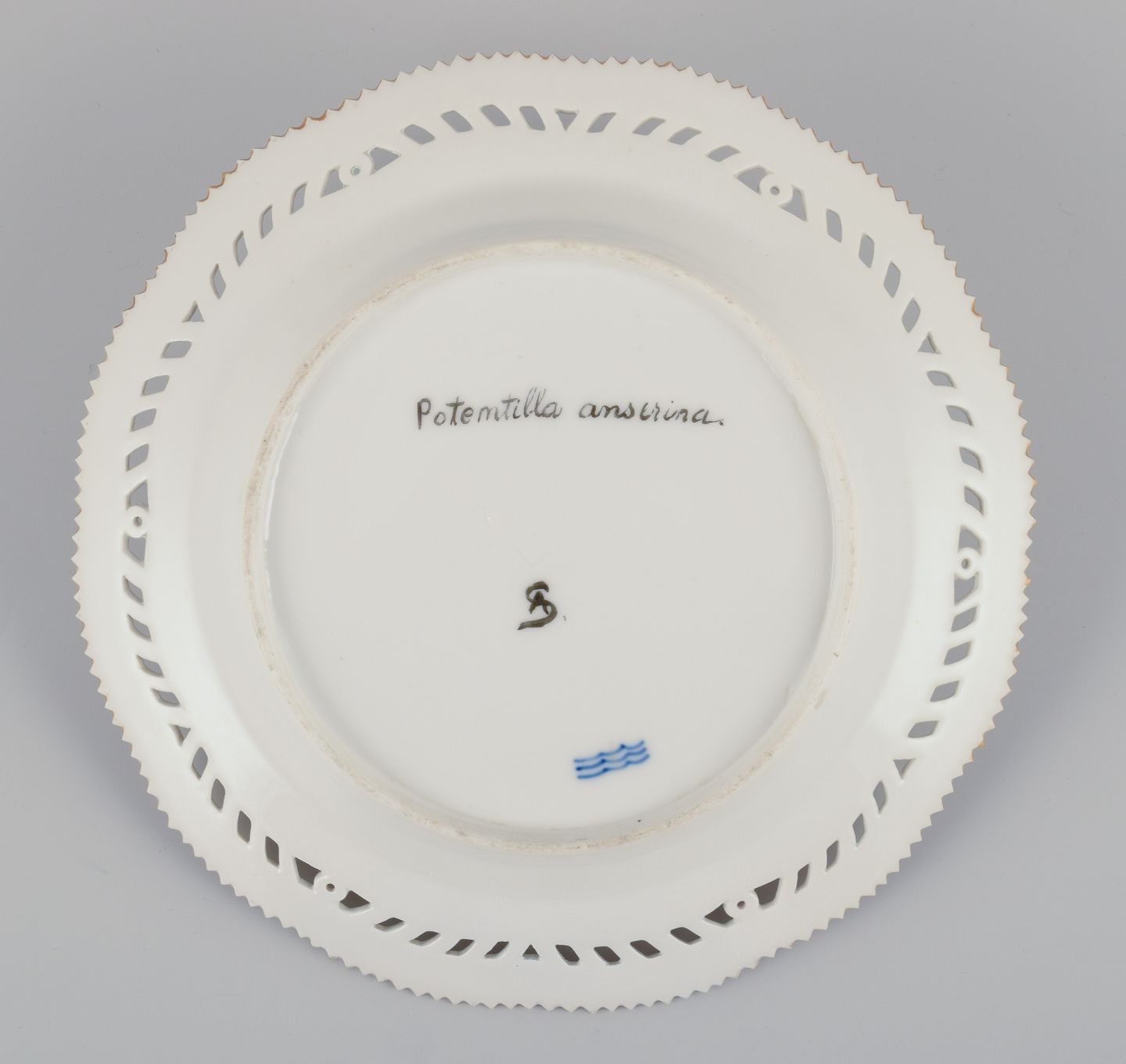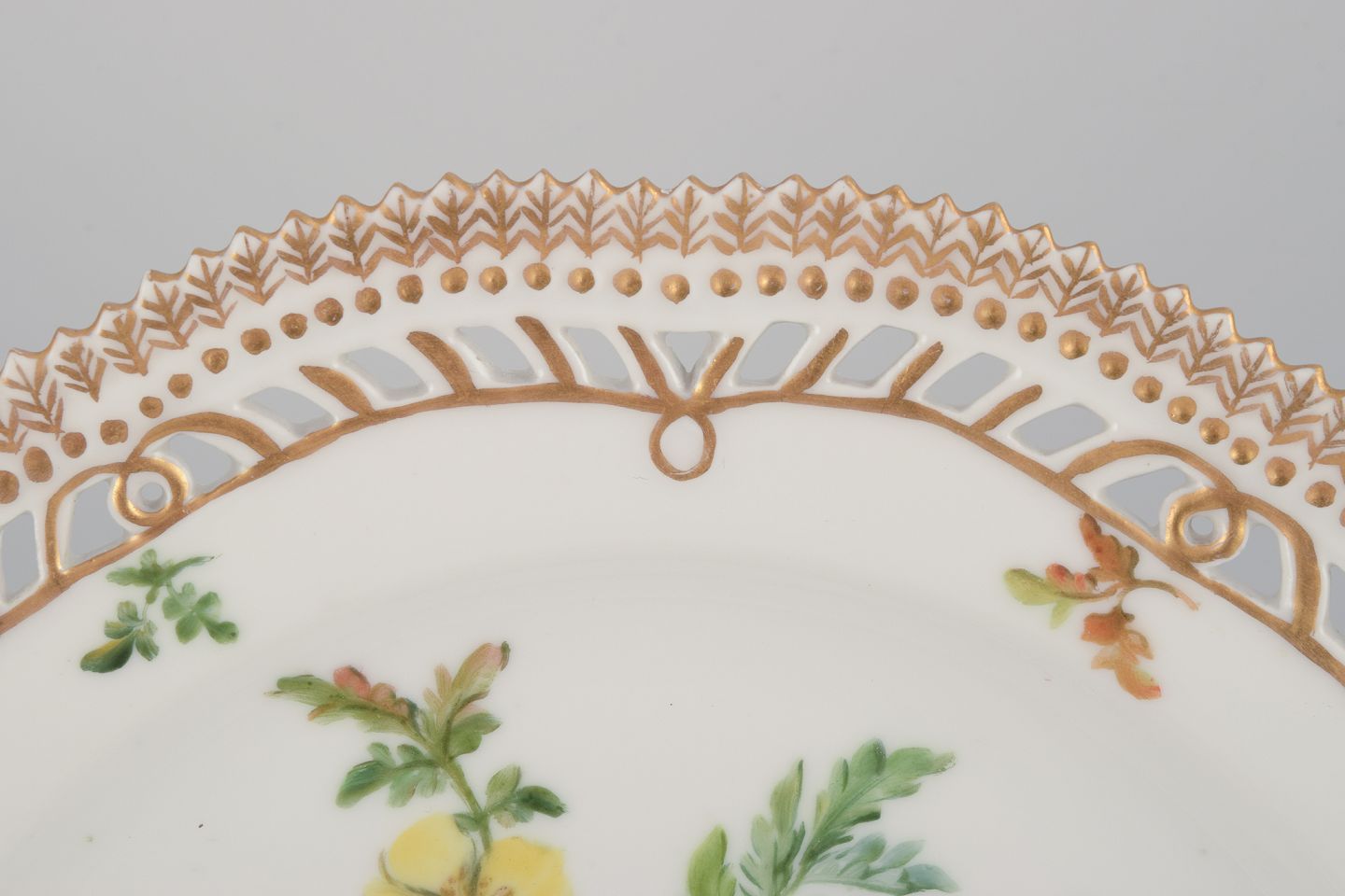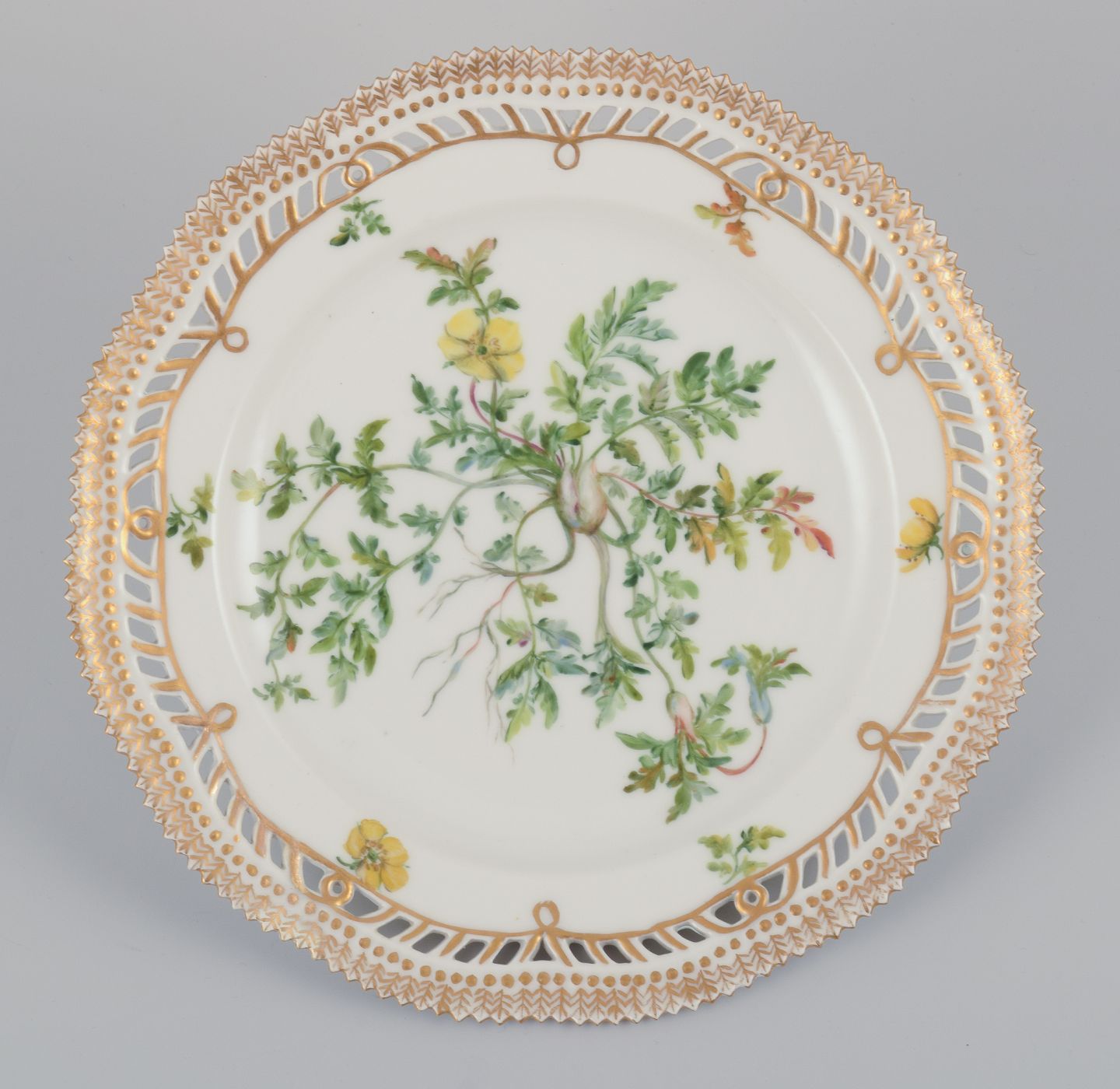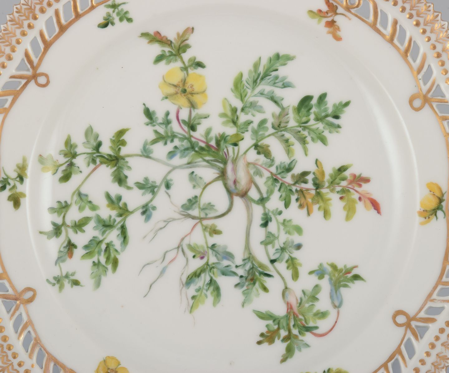 Royal Copenhagen Flora Danica, hjemmedekoreret gennembrudt frokosttallerken. Guldkant. Håndmalet. Tidligt 1900-tallet. Stemplet. Perfekt stand. Anden sortering. Mål: D 22,0 cm.
