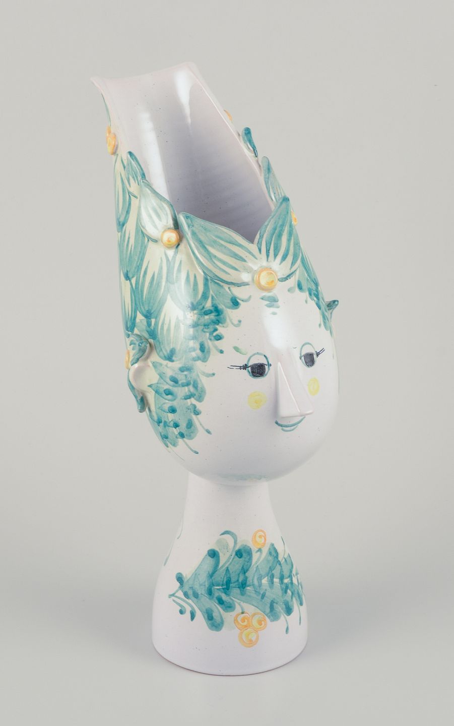 Bjørn Wiinblad (1918-2006). Vase i flerfarvet keramik. Glasur i grøn og gul. signeret i bunden med monogram V 20, 83 (1983) Danmark. I perfekt stand. Mål: H 30,3 cm. x B 18,0 cm.