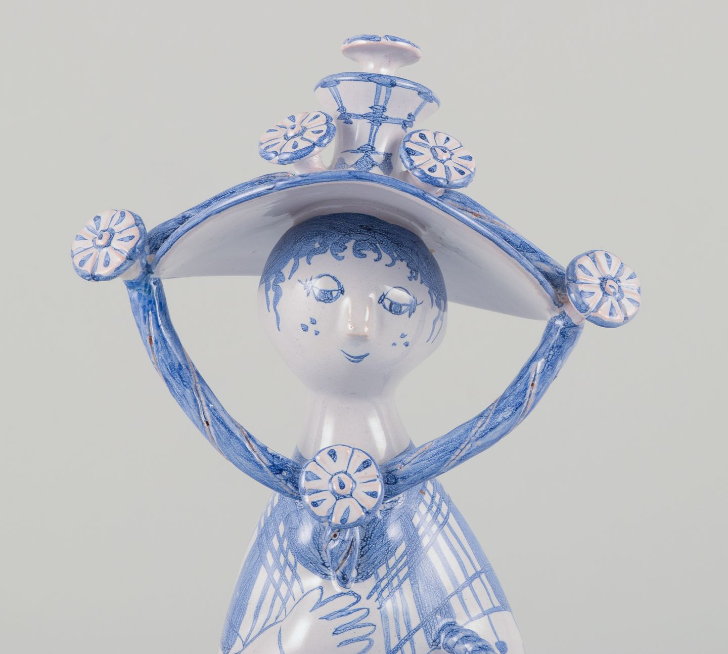 Bjørn Wiinblad (1918-2006). "Efterår" fra serien "De fire årstider", figur i blåglaseret lertøj. Modelnummer M22. Signeret i monogram samt dateret 86. I perfekt stand. Mål: H 32,5 cm. x B 13,5 cm.